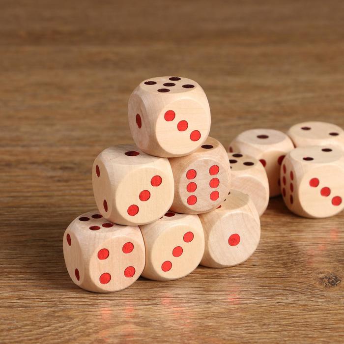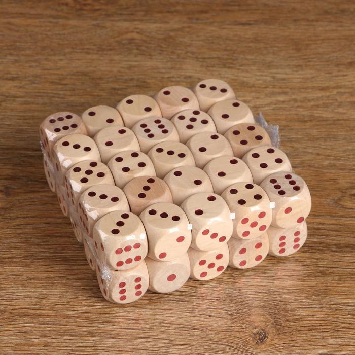 Кости игральные 3х3 см, дерево, красные точки, фасовка 50 шт 2463617