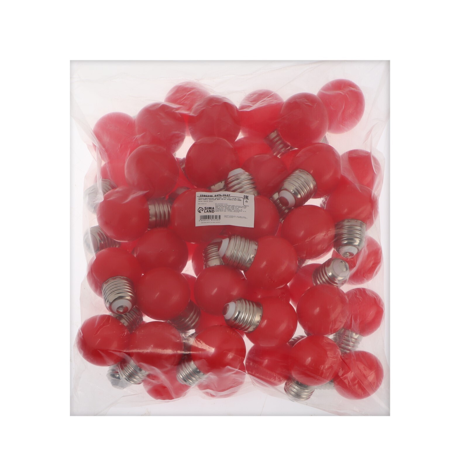 Лампа светодиодная декорат., G45, Е27, 1,5 Вт, для белт-лайта, красный 2580346