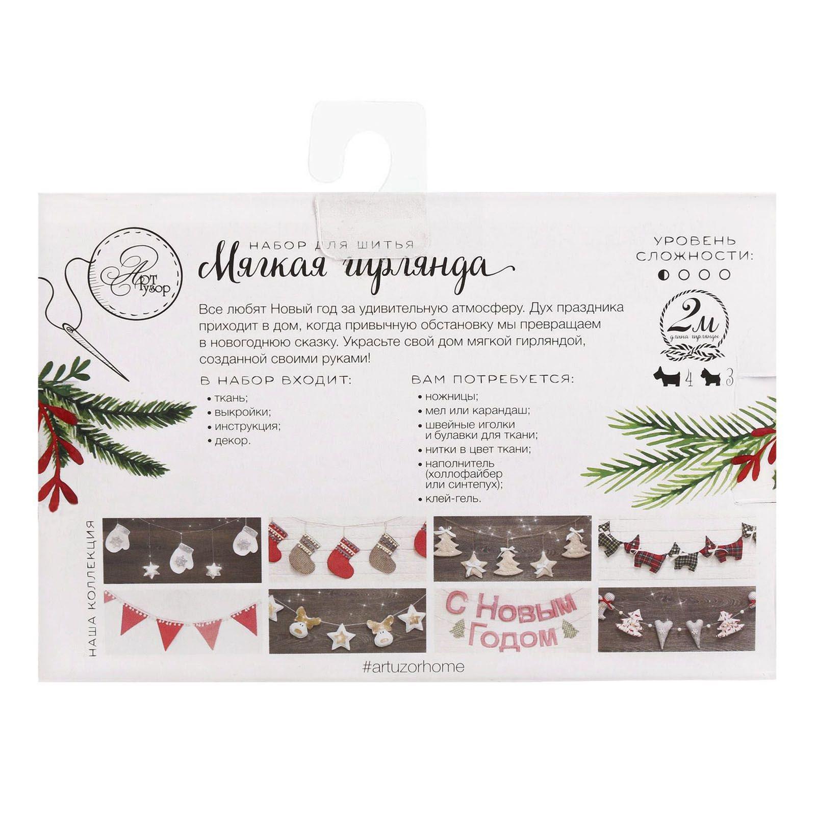 В Новый год нам очень хочется, чтобы в душе и в доме царила особенная атмосфера волшебства. Один из способов создать праздничное настроение – украсить дом мягкой гирляндой, сделанной своими руками. С помощью нашего набора сшить её вам не составит труда. А процесс создания обязательно подарит радость! Украшение наполнит дом теплом и уютом и станет его изюминкой.