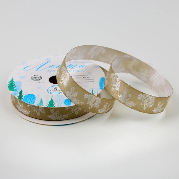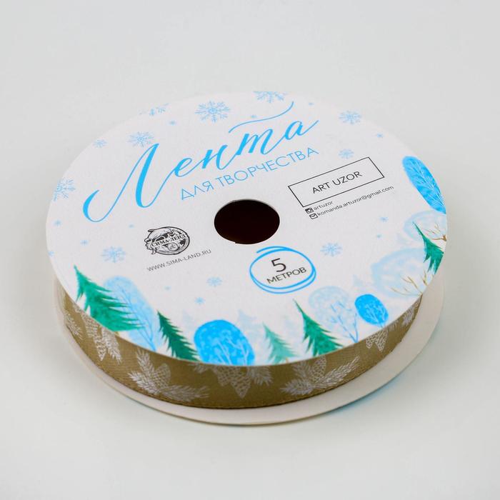 Лента атласная декоративная «Еловые веточки», 1,5 см × 5 м 2353203