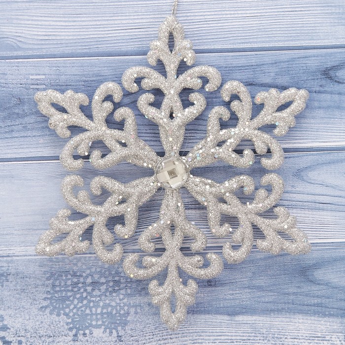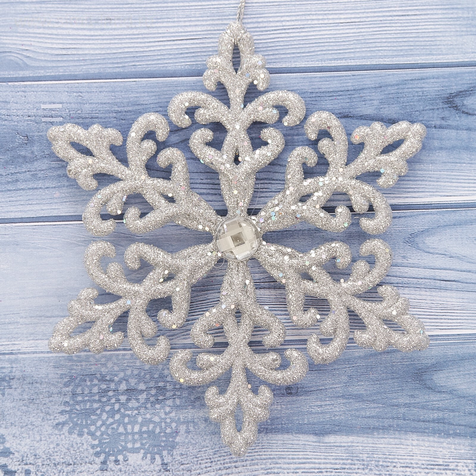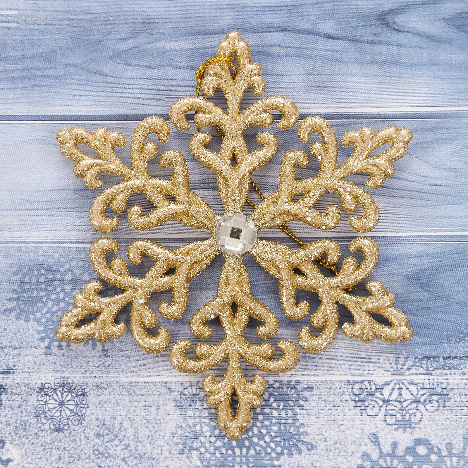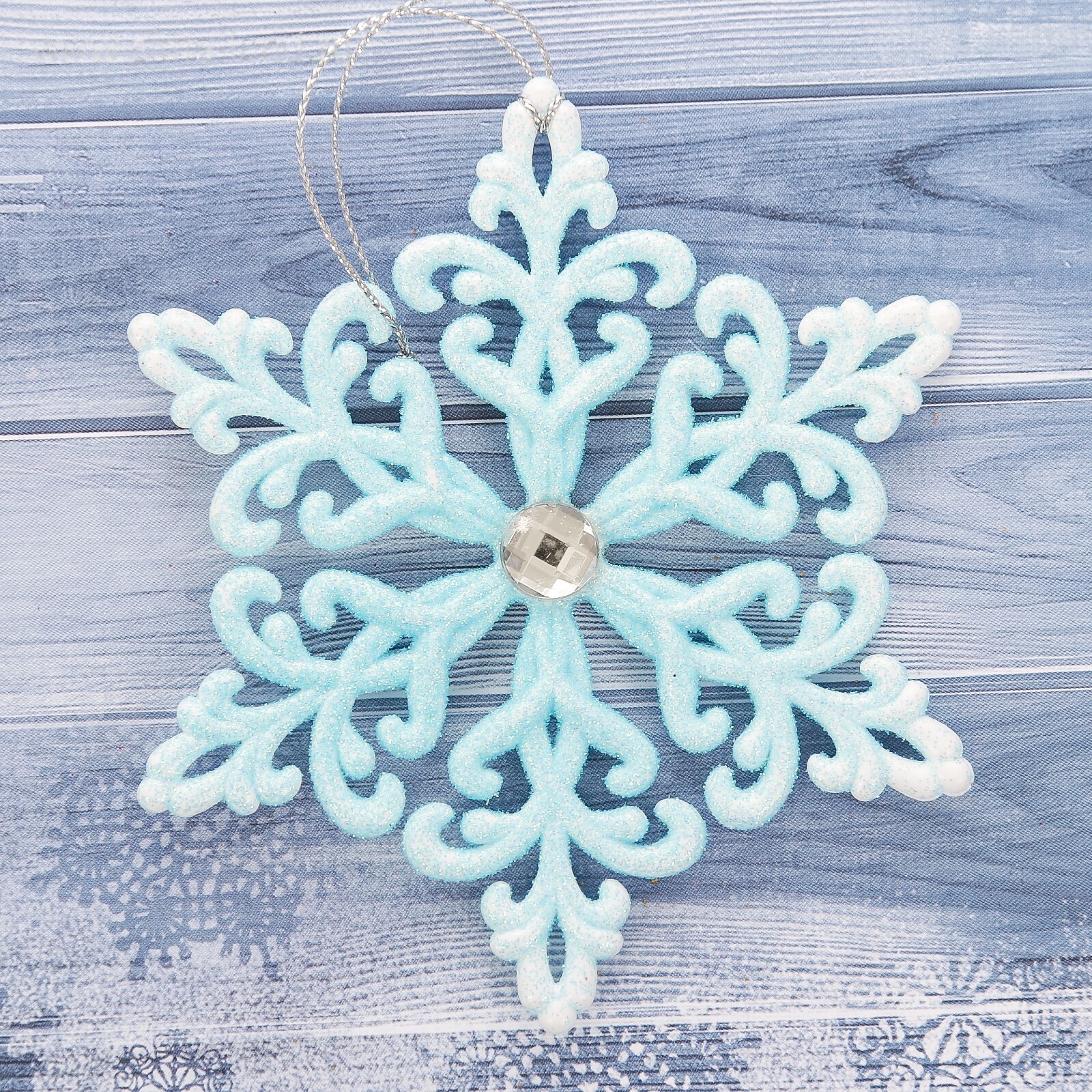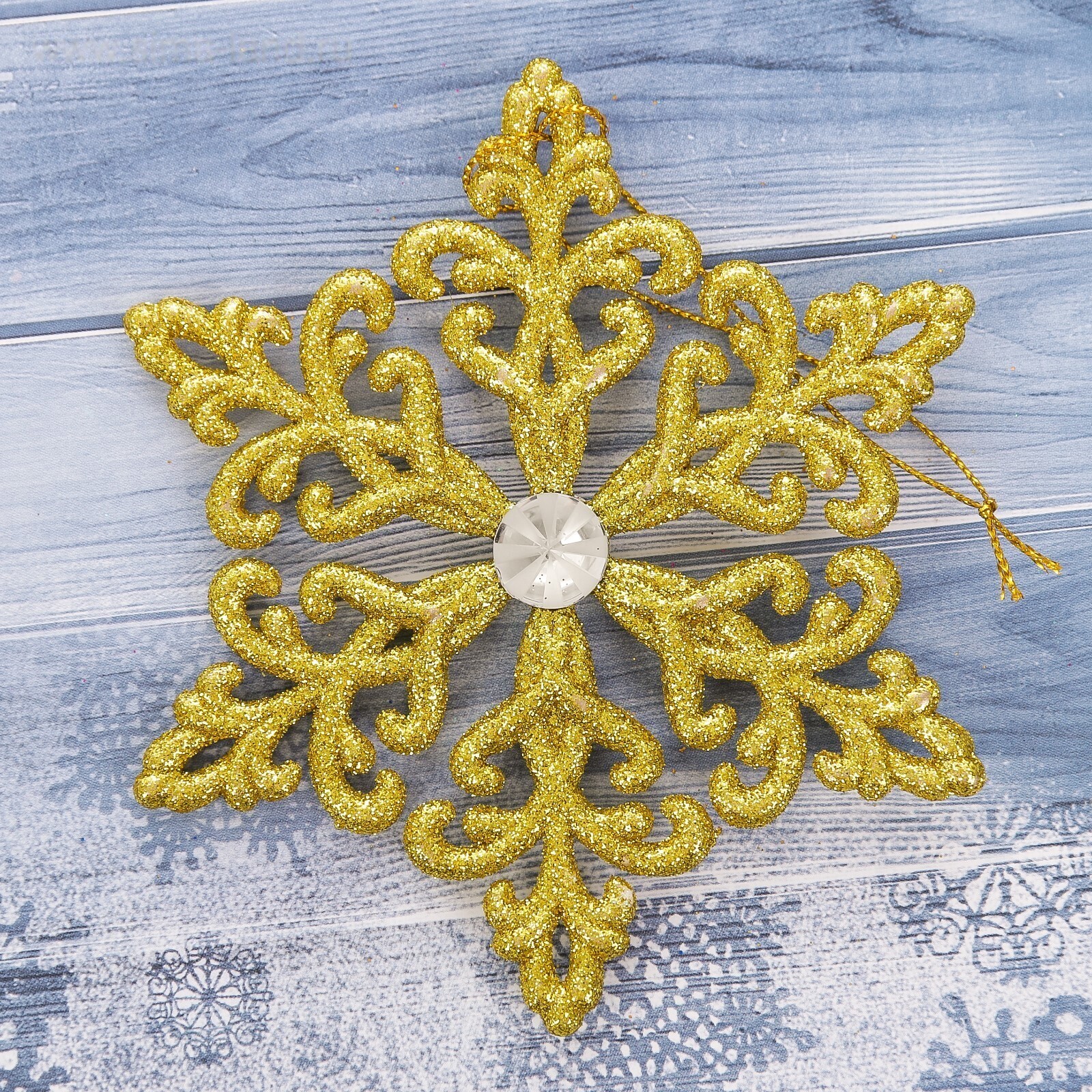 Новогоднее украшение "Снежинка кристал с камнем" 12 см микс 2839487
