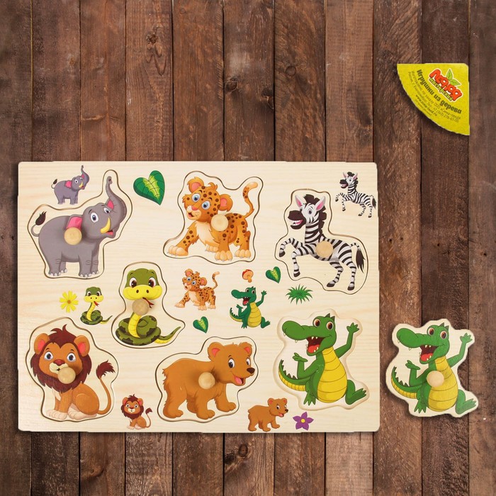 С помощью рамки-вкладыша ребёнок познакомится с животными нашей планеты. Для большей продуктивности занимайтесь вместе с ребёнком, расскажите о среде обитания зверей и чем они питаются.