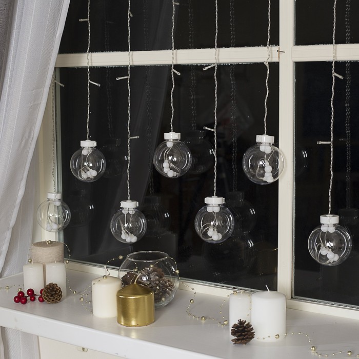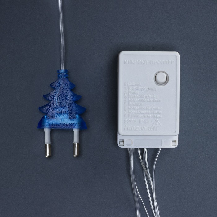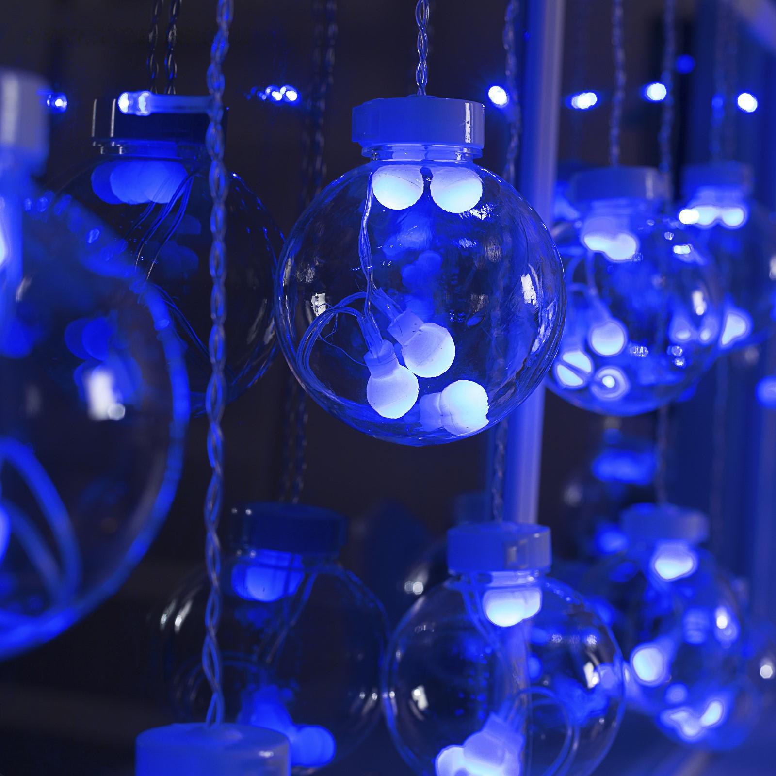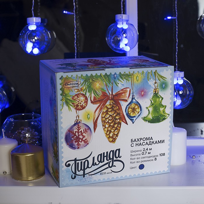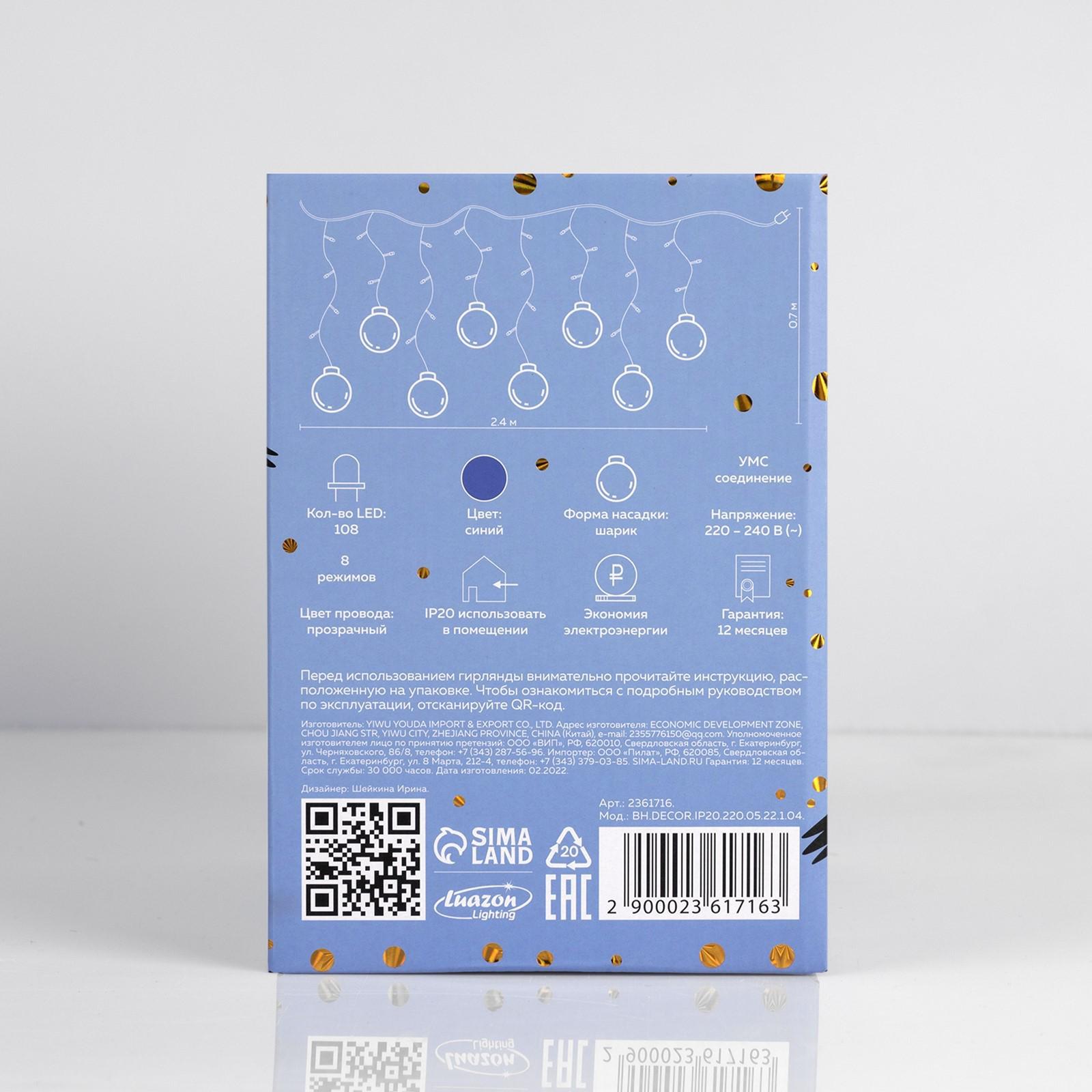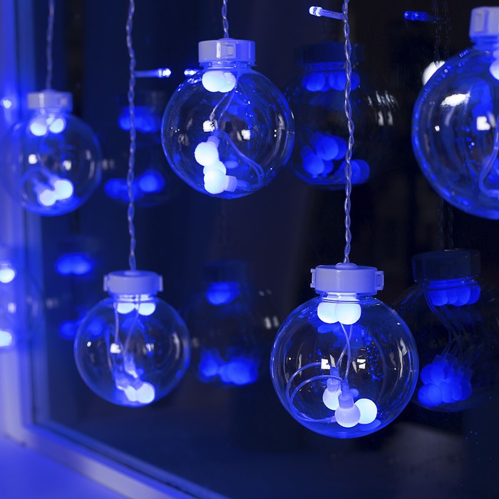 Гирлянда "Бахрома" 2.4 х 0.7 м с насадками "Шарики", IP20, прозрачная нить, 108 LED, свечение синее, 8 режимов, 220 В 2361716