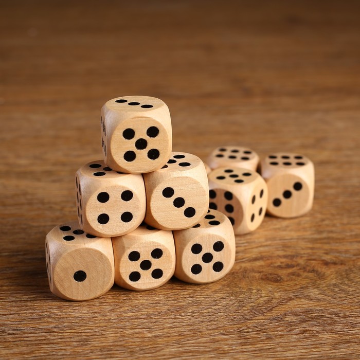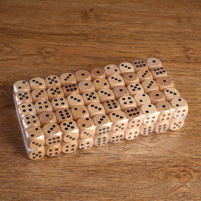 Кости игральные 2.5х2.5 см дерево, черные точки, фасовка 100 шт 2463616