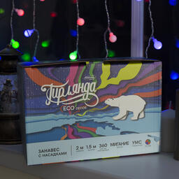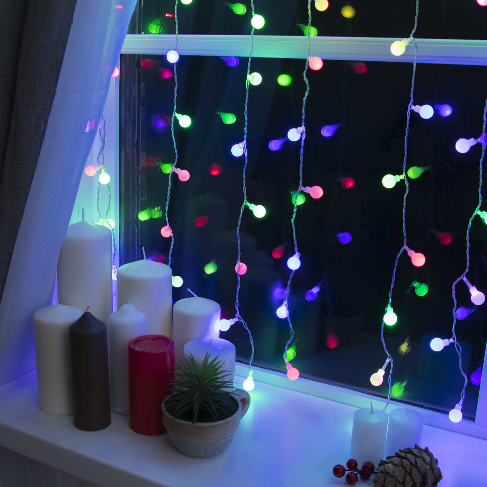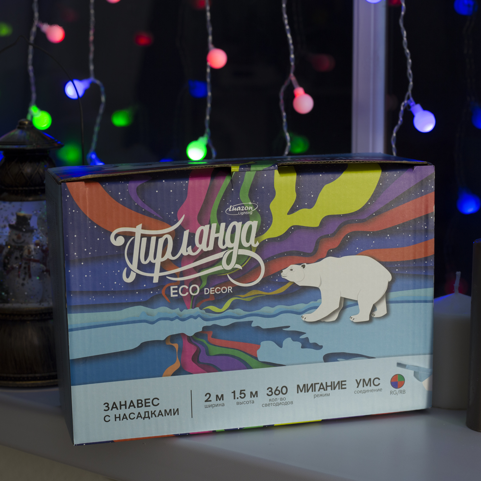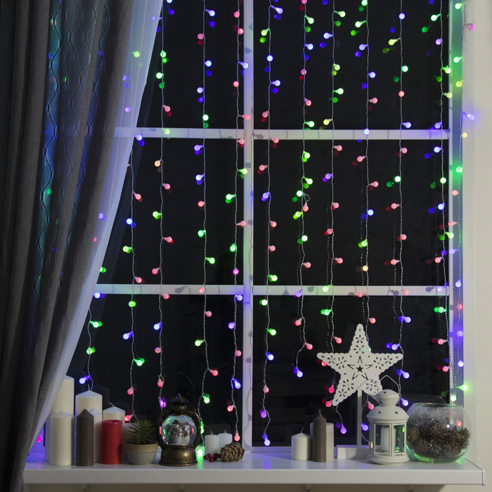 Гирлянда "Занавес" 2 х 1.5 м с насадками "Шарики", IP20, прозрачная нить, 360 LED, свечение RG/RB, мигание, 220 В 2361723