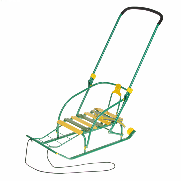 <p>Основные характеристики:</p><ul><li>пластиковые съёмные колёса;</li><li>сиденье из деревянных поперечных реек;</li><li>складная спинка;</li><li>складная ручка для родителей.</li></ul><p>Характеристики</p><ul><li>Размеры сиденья: 39 × 29 см.</li><li>Размеры санок с учётом толкателя: 81 × 36,5 × 100 см.</li><li>Размеры санок без учёта толкателя: 91 × 36,5 × 40 см.</li><li>Высота от пола до сиденья: 18 см.</li><li>Высота от пола до ручки: 90 см.</li><li>Высота спинки: 24,5 см.</li><li>Ширина полозьев: 3 см.</li><li>Диаметр колёс: 6,5 см.</li></ul>