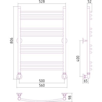 Полотенцесушитель водяной без полки ВПС-45, нержавеющая сталь, 50x80 см