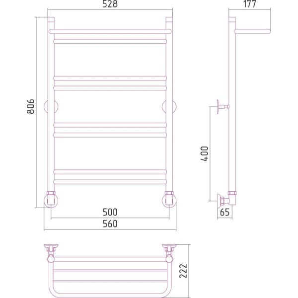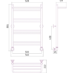 Полотенцесушитель водяной с полкой ВПС 34 , нержавеющая сталь, 50x80 см