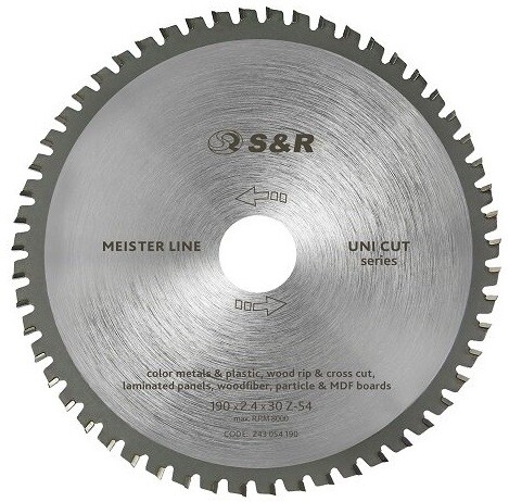 Пильный диск S&R Uni Cut 190 х 30 х 2,4 54Т (243054190)