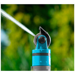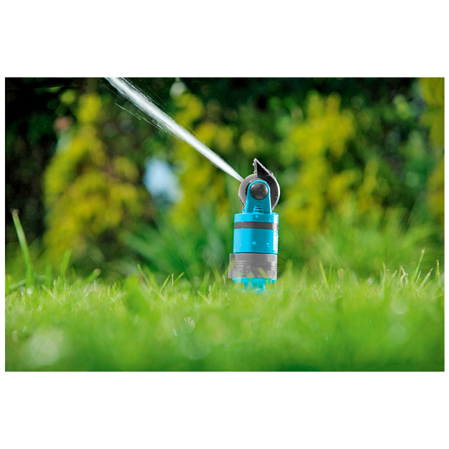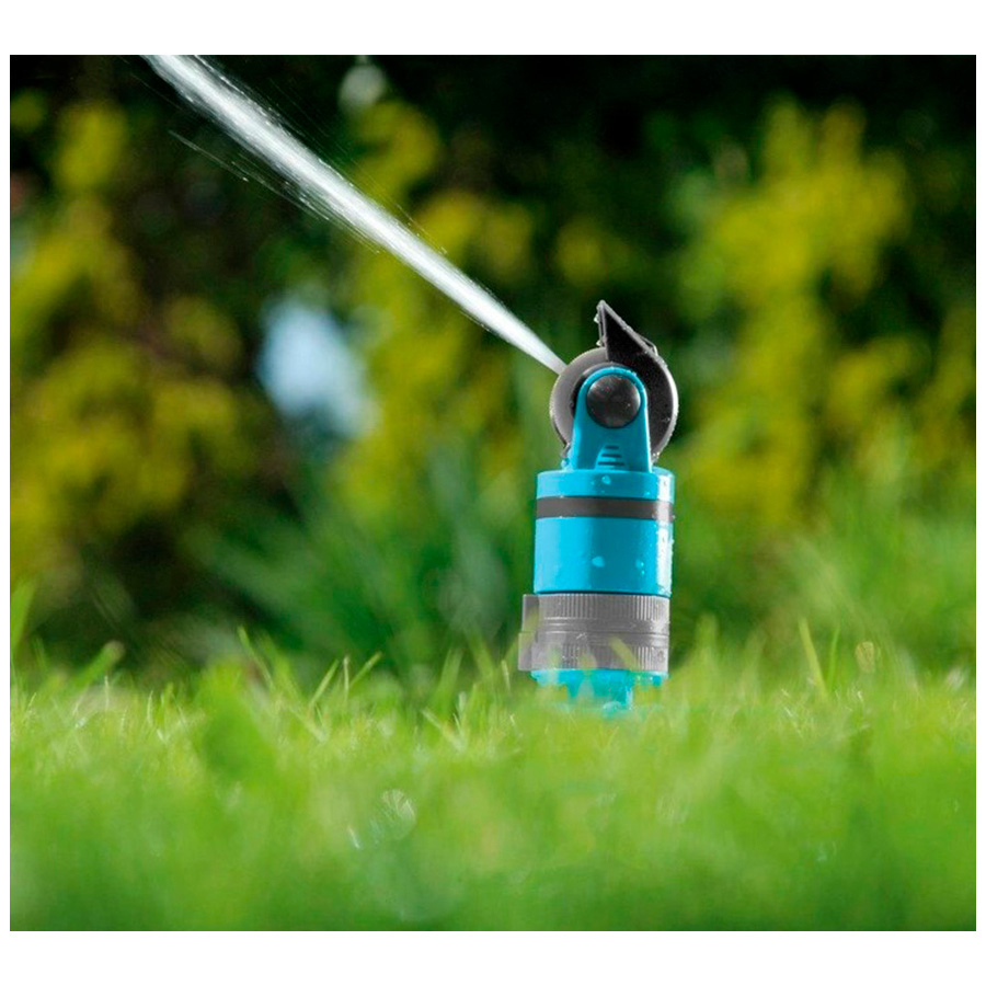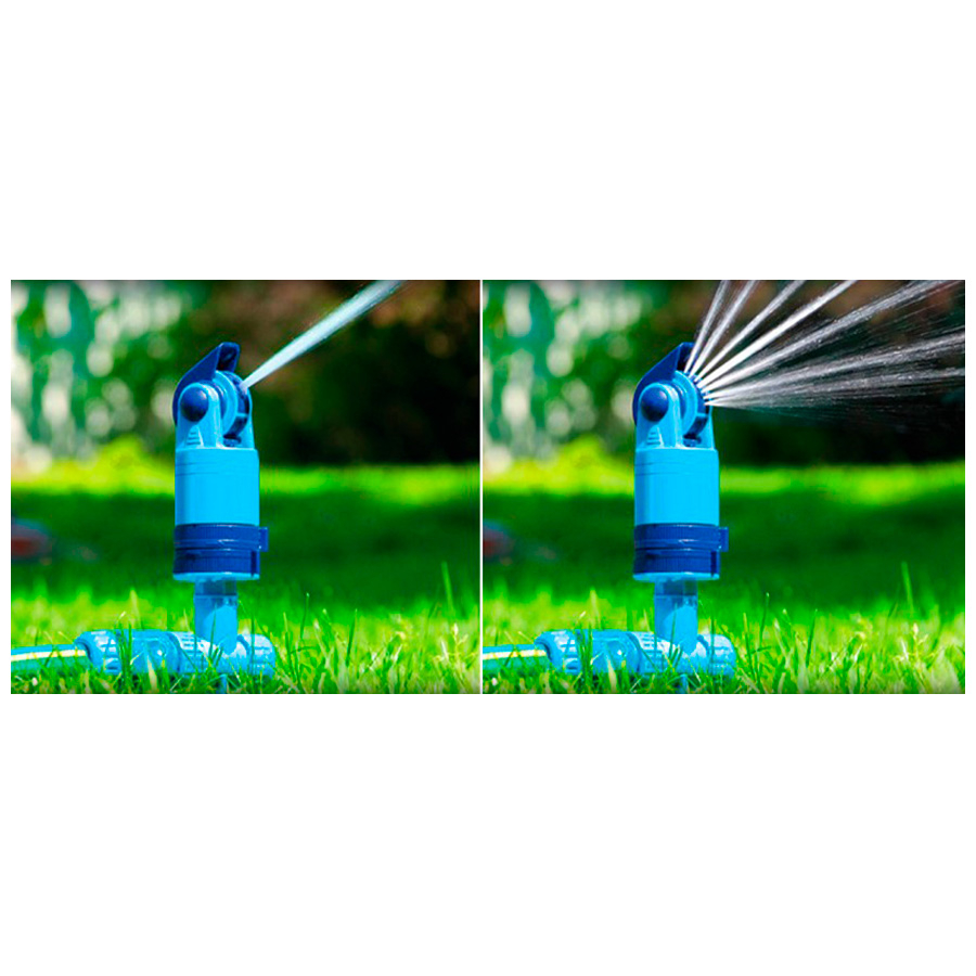 Спринклер имеет плавную регулировку струи воды в 4 различных комбинациях и возможность настройки площади орошения с помощью подвижной спринклерной головки, что упрощает обращение с продуктом и его использование.
