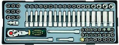 Набор торцевых головок, состоящий из 74 предметов. Набор в пластиковом лотке. В набор входят: 14 головок с квадратом 1/4": 3.2, 4, 4.5, 5, 5.5, 6, 7, 8, 9, 10, 11, 12, 13, 14 мм; 9 головок глубоких с квадратом 1/4": 5, 6, 7, 8, 9, 10, 11, 12, 13 мм; 7 головок (квадрат - 1/4") с шестигранником: 3, 4, 5, 6, 7, 8, 10 мм; 8 головок (квадрат - 1/4") с насадкой TORX: T8, T10, T15, T20, T25, T27, T30, T40; 3 головки (квадрат - 1/4") с насадкой "прямой шлиц": 4, 5.5, 6.5 мм; 3 головки (квадрат - 1/4") с насадкой крестовой: PH.1, PH.2, PH.3; 3 головки (квадрат - 1/4") с насадкой "позидрайв": PZ.1, PZ.2, PZ.3; 10 шестигранников: 1.27, 1.5, 2, 2.5, 3, 4, 5, 6, 8, 10 мм; держатель с квадратом 1/4"; трещотка с изломом 1/4", 72 зубца; вороток Т-образный с квадратом 1/4"; 3 удлинителя с квадратом 1/4": 50, 100, 150 мм; кардан с квадратом 1/4"; магнитный держатель вставок 1/4"..
