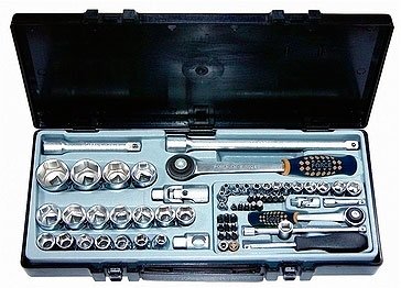 - Наличие в наборе Удлинители 1/4", Удлинители 1/2", Трещотка 1/4", Трещотка 1/2", Торцевые головки 1/4", Торцевые головки 1/2", Отвертка под биты, Биты