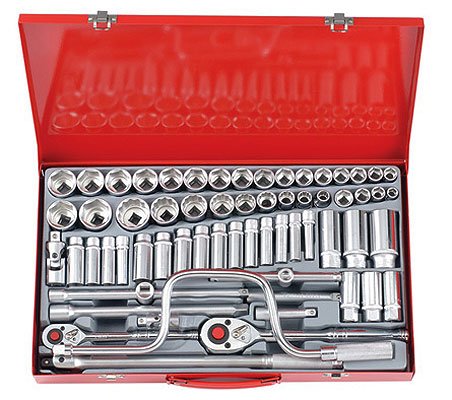 - Наличие в наборе Удлинители 3/8", Удлинители 1/2", Трещотка 3/8", Трещотка 1/2", Торцевые головки 3/8", Торцевые головки 1/2"