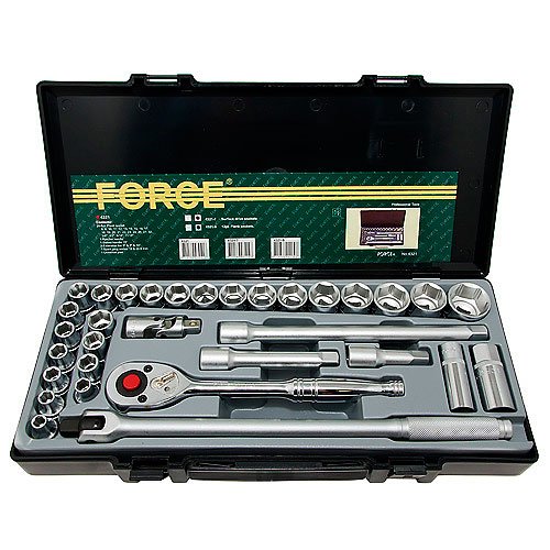 - Наличие в наборе Удлинители 1/2", Трещотка 1/2", Торцевые головки 1/2", Головки свечные