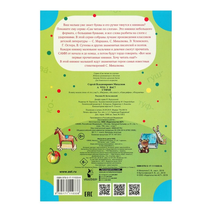 <p>Сам читаю по слогам. Стихи. А что у вас? Михалков С. В. — отличный вариант для тех родителей, которые привыкли окружать своего малыша только лучшими и качественными вещами. За такой книжкой ваш ребёнок проведёт время с пользой и удовольствием, узнает много нового и интересного.</p>