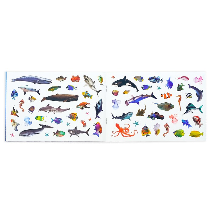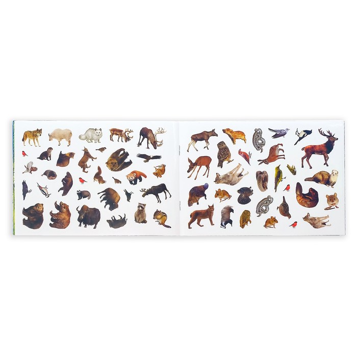 В альбоме представлено более 100 наклеек с красочными изображениями животных, птиц, подводных обитателей и рептилий. Яркие картинки тренируют визуальное восприятие малыша, память и воображение.