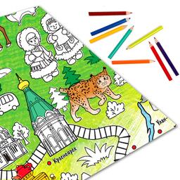 Плакат сделан из бумаги, его можно раскрашивать чем угодно, начиная он цветных карандашей, заканчивая акварелью.