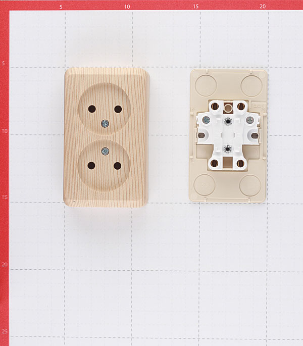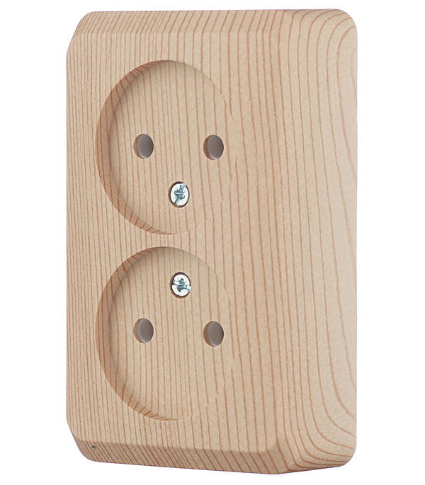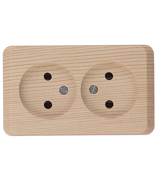 Розетка двойная Этюд Дача о/у без заземления сосна