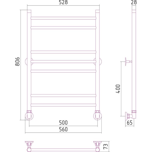 Полотенцесушитель водяной без полки ВПС-18, нержавеющая сталь, 50x80 см