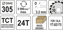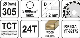 Технические характеристики Yato YT-60782 (305x30x3.2x2.2 мм), 24 зуба