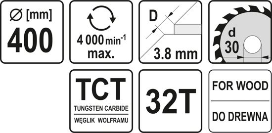 Диск пильный Yato 400х30x3.8x2.8 мм, 32 зубьев (YT-6085)