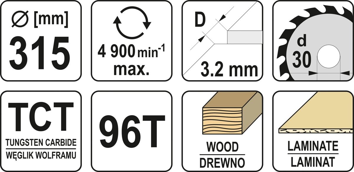 Технические характеристики Yato YT-60795 (315x30x3.2x2.2 мм), 96 зубцов