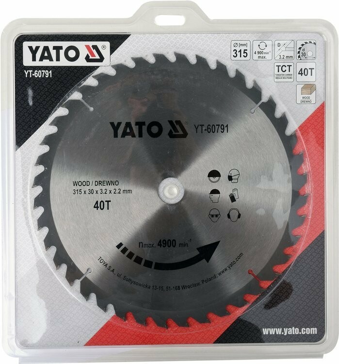 Технические характеристики Yato YT-60791 (315x30x3.2x2.2 мм), 40 зубцов