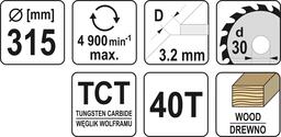 Диск пильный по дереву с победитовыми напайками Yato YT-60791 (315x30x3.2x2.2 мм), 40 зубцов