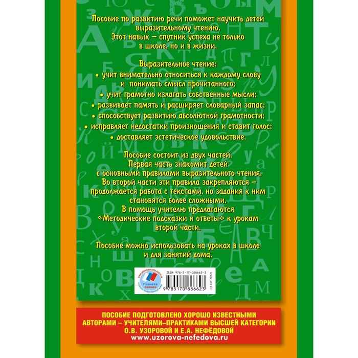 <p>Пособие по развитию речи поможет научить детей выразительному чтению. Этот навык – спутник успеха не только в школе, но и в жизни. Выразительное чтение учит внимательно относиться к каждому слову, понимать смысл прочитанного и грамотно излагать свои мысли, развивает память и исправляет недостатки произношения. Занятия можно проводить как факультатив, раз в неделю. </p>
