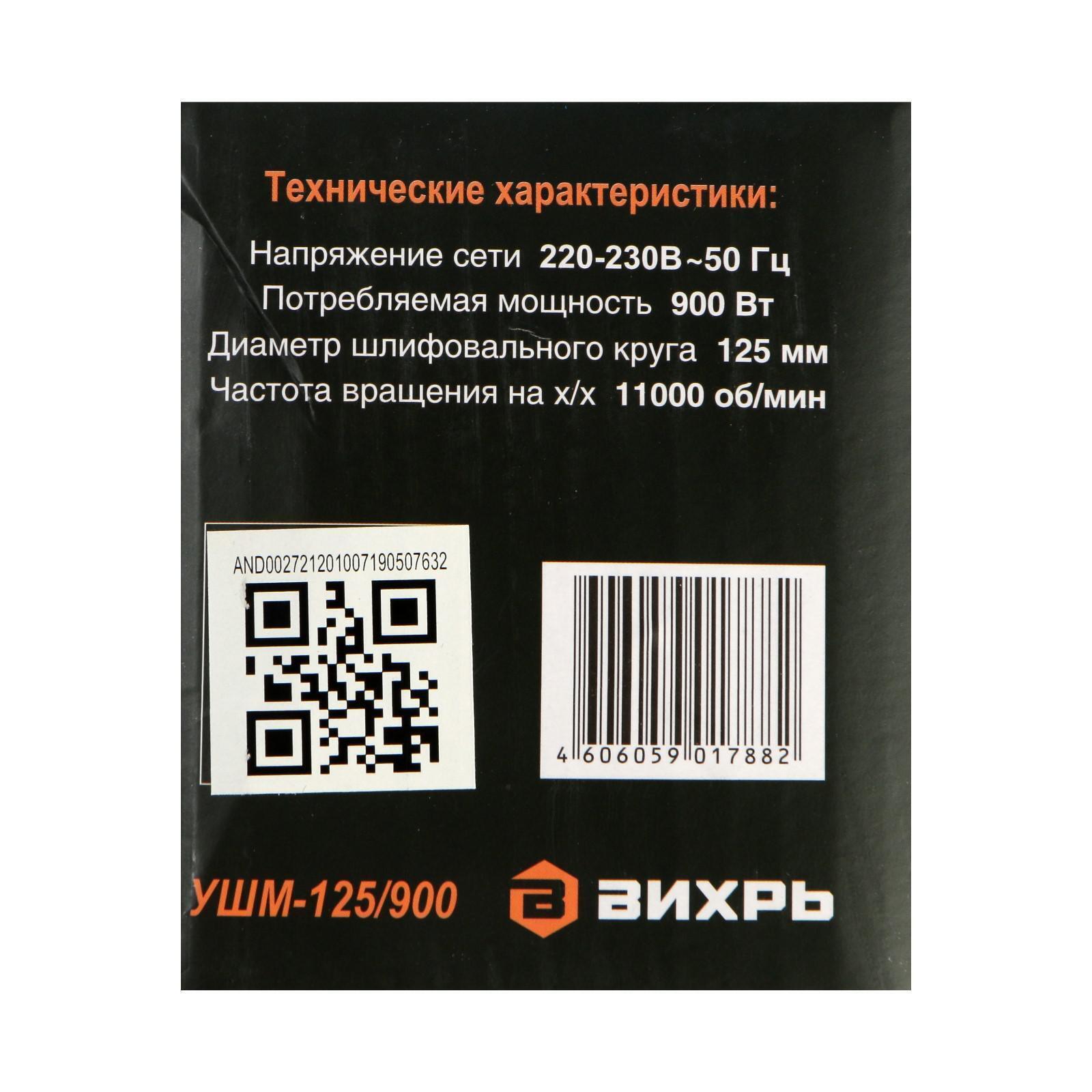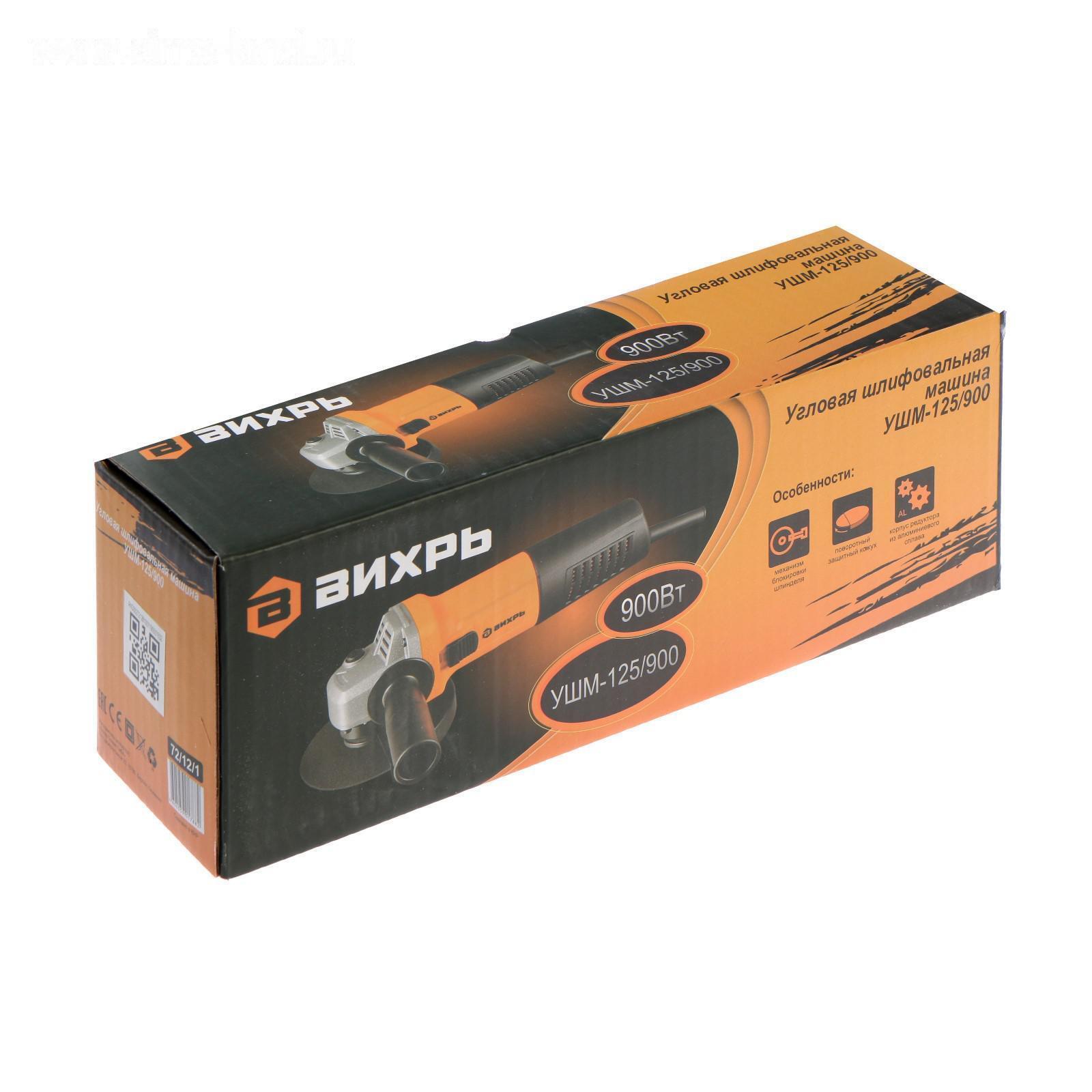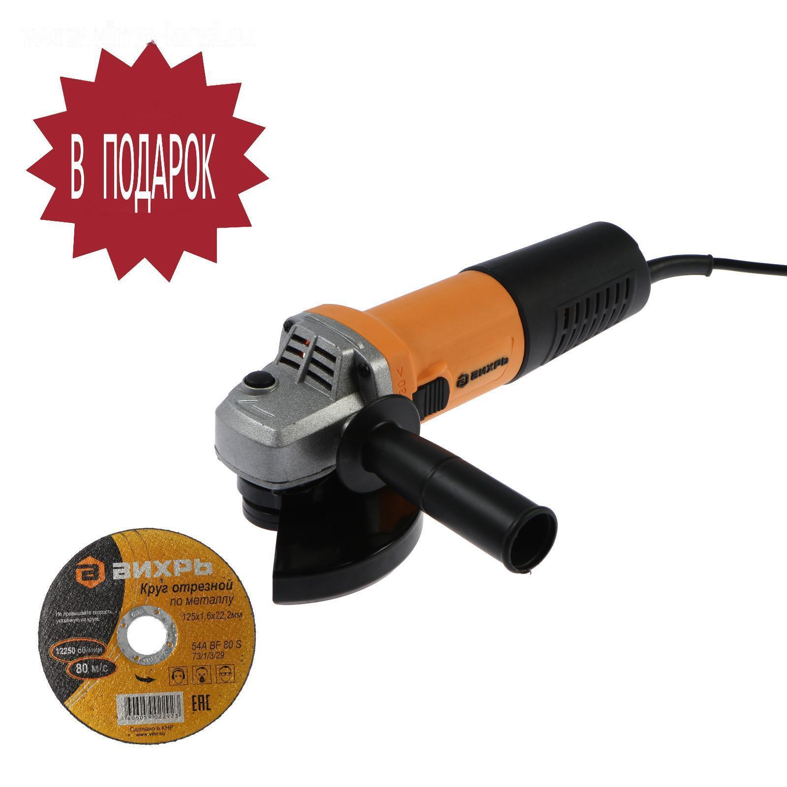 Угловая шлифмашина "Вихрь" УШМ-125/900, 900 Вт, 125х22.2 мм, 11000 об/мин, М14 + КРУГ 5193906