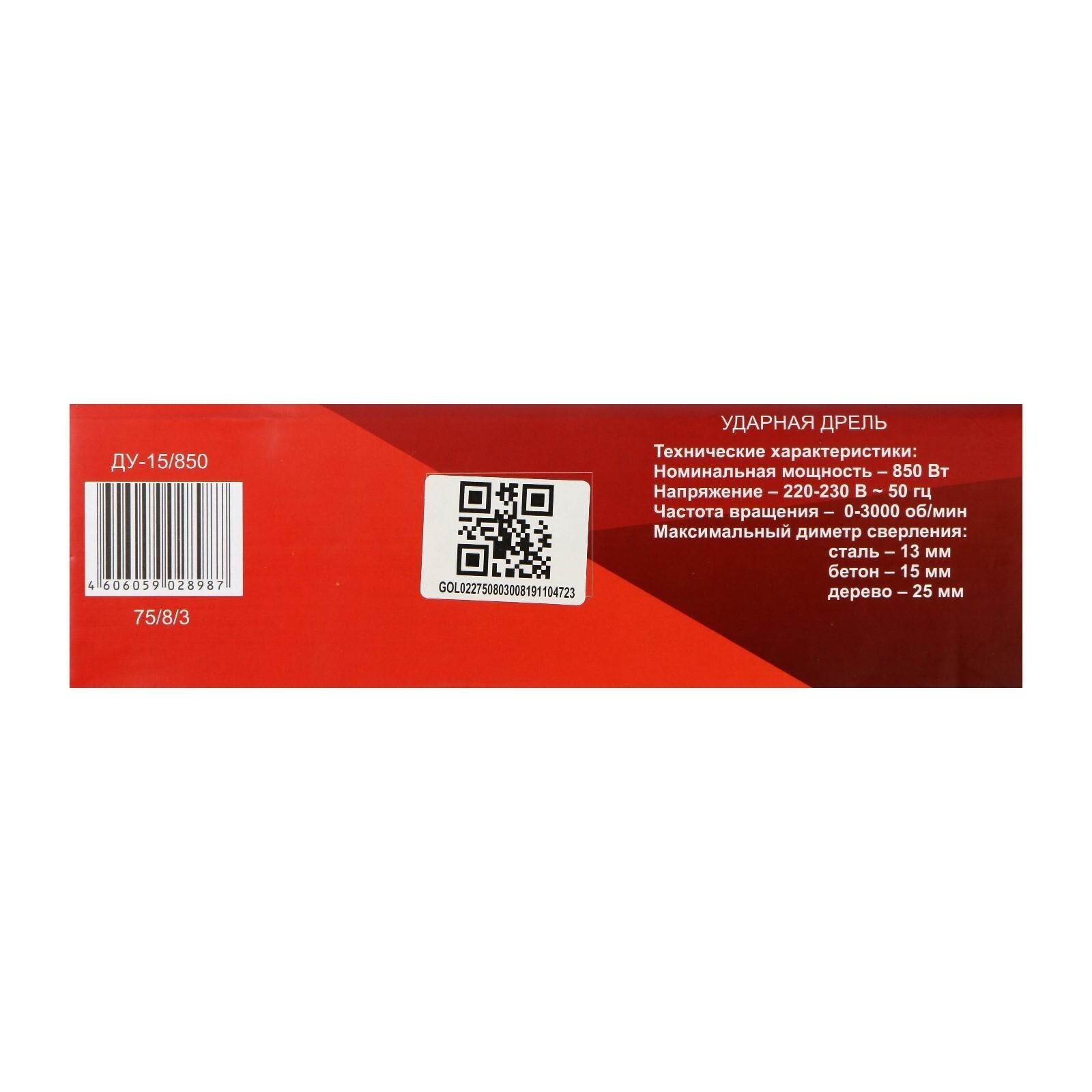 Дрель ударная "Ресанта" ДУ-15/850, 850 Вт, ЗВП 1.5-13 мм, 3000 об/мин, реверс + СВЕРЛА 5193867