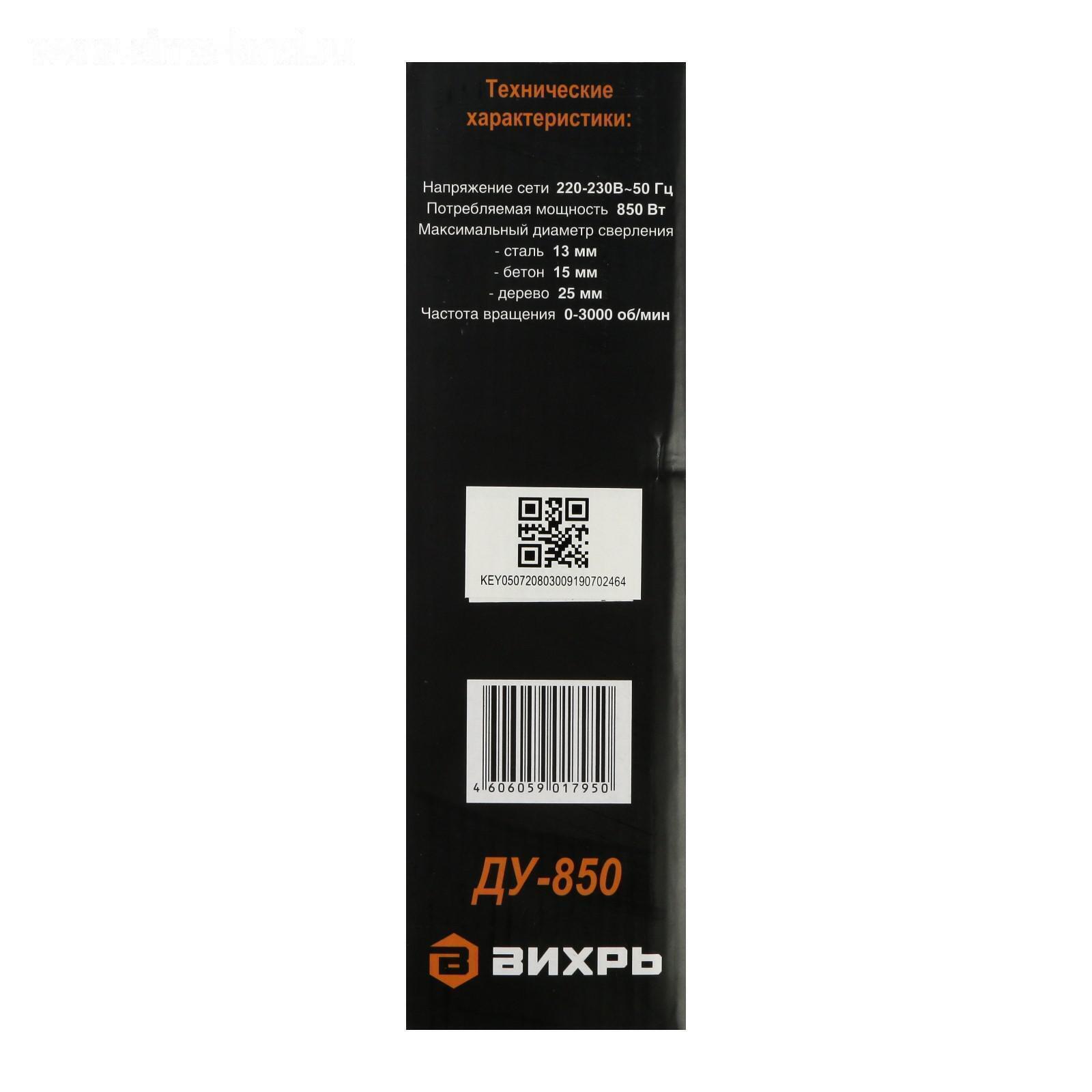 Дрель ударная "Вихрь" ДУ-850, 850 Вт, ЗВП 1.5-13 мм, 3000 об/мин, реверс + СВЕРЛА 5193870