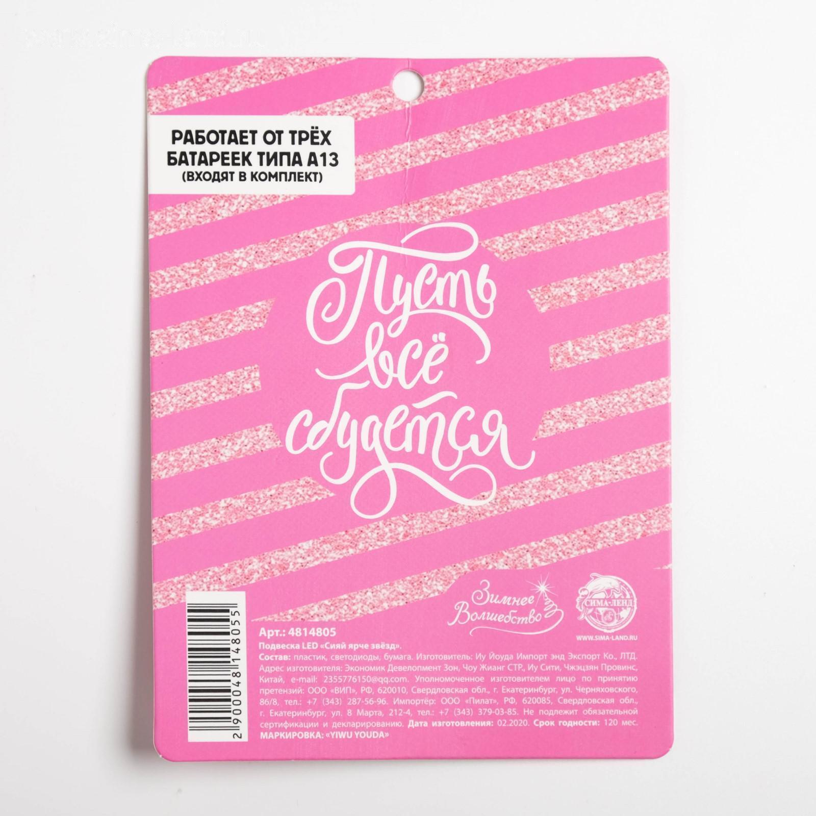 Подвеска LED «Сияй ярче звёзд» 4814805