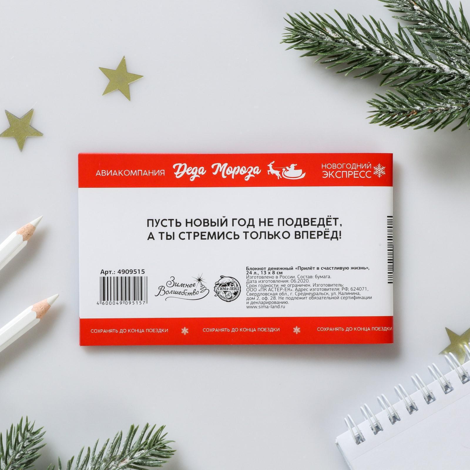 Блокнот денежный «Прилёт в счастливую жизнь», 24л, 13х8см 4909515