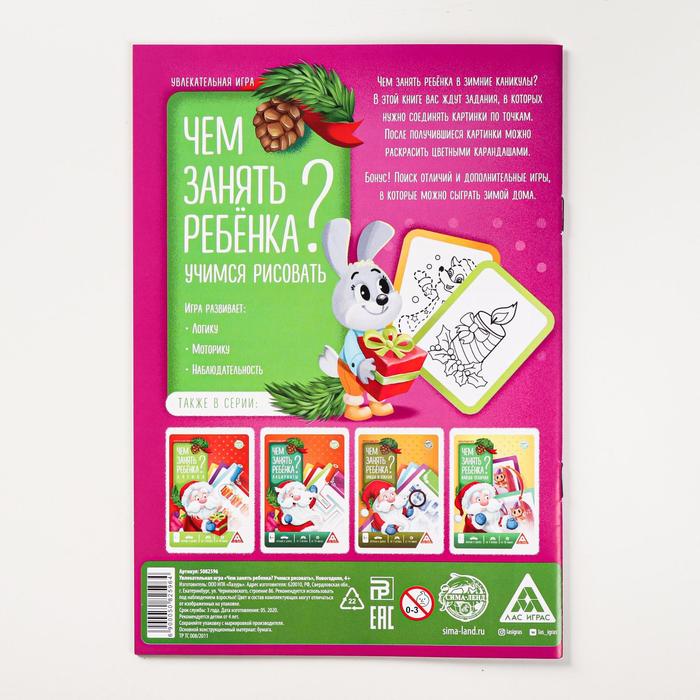 <p><b>Играем и учимся рисовать!</b></p><p>Не знаете, чем занять ребёнка в зимние каникулы? В этой книге вас ждёт множество заданий, в которых нужно соединять картинки по точкам и раскрашивать их, а также дорисовывать некоторые элементы. Также в качестве бонуса есть дополнительные игры, в которые можно сыграть зимой дома, на улице или в поездке.</p><p><b>Как играть?</b></p><p>Просто подготовьте пишущий предмет (ручку, цветные карандаши или фломастеры), открывайте книгу, внимательно читайте задания и выполняйте их. Это поможет натренировать моторику рук, творческие способности, усидчивость и не только.</p><p>Книга состоит из 26 страниц размером 14,9 × 21 см.</p><p><b>Встречайте Новый год вместе с ЛАС ИГРАС!</b></p>