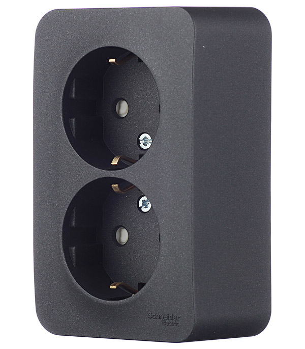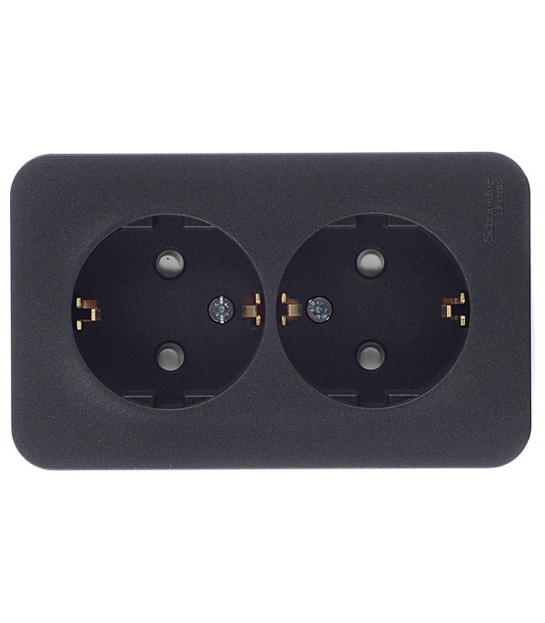 Розетка двойная с заземлением со шторками о/у Schneider Electric Blanca антрацит