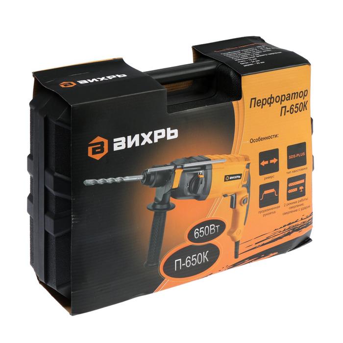 Перфоратор "Вихрь" П-650к, 650 Вт, 2 режима, SDS-Plus, 1.5 Дж, 3900 уд/мин, кейс + БУРЫ 5193888