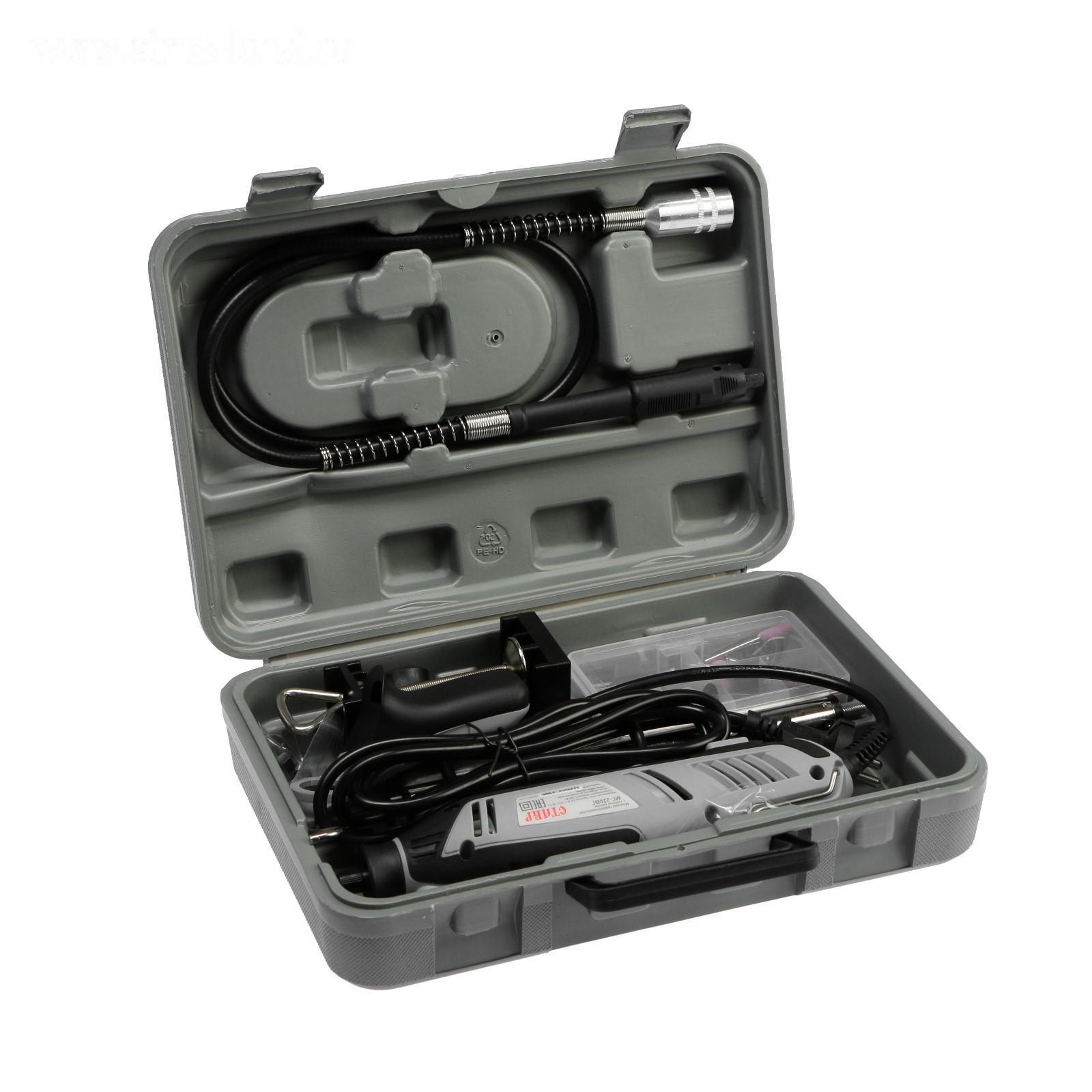 Гравер "Ставр" МГ-220ВГ, с гибким валом, 220 Вт, 40000 об/мин, цанга 2-3.2 мм, насадки, кейс 5186435