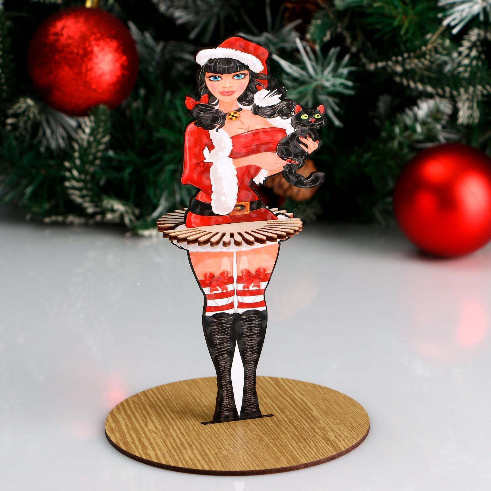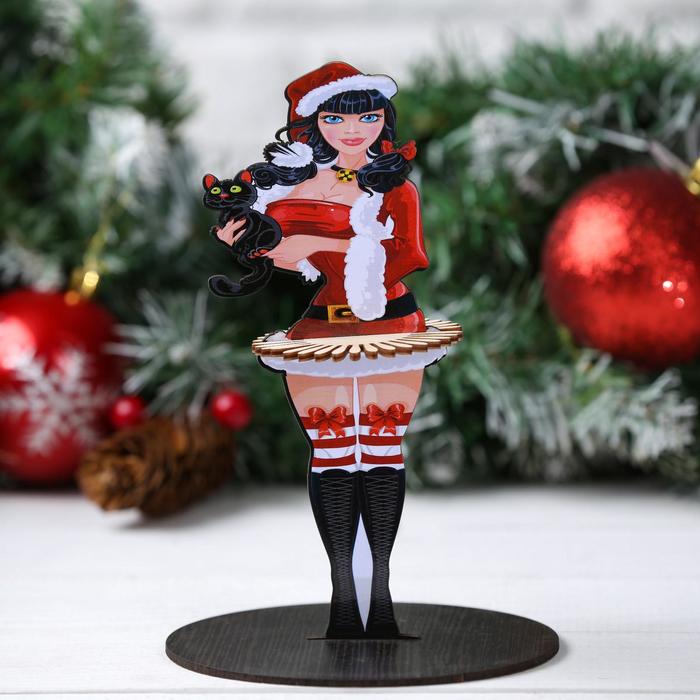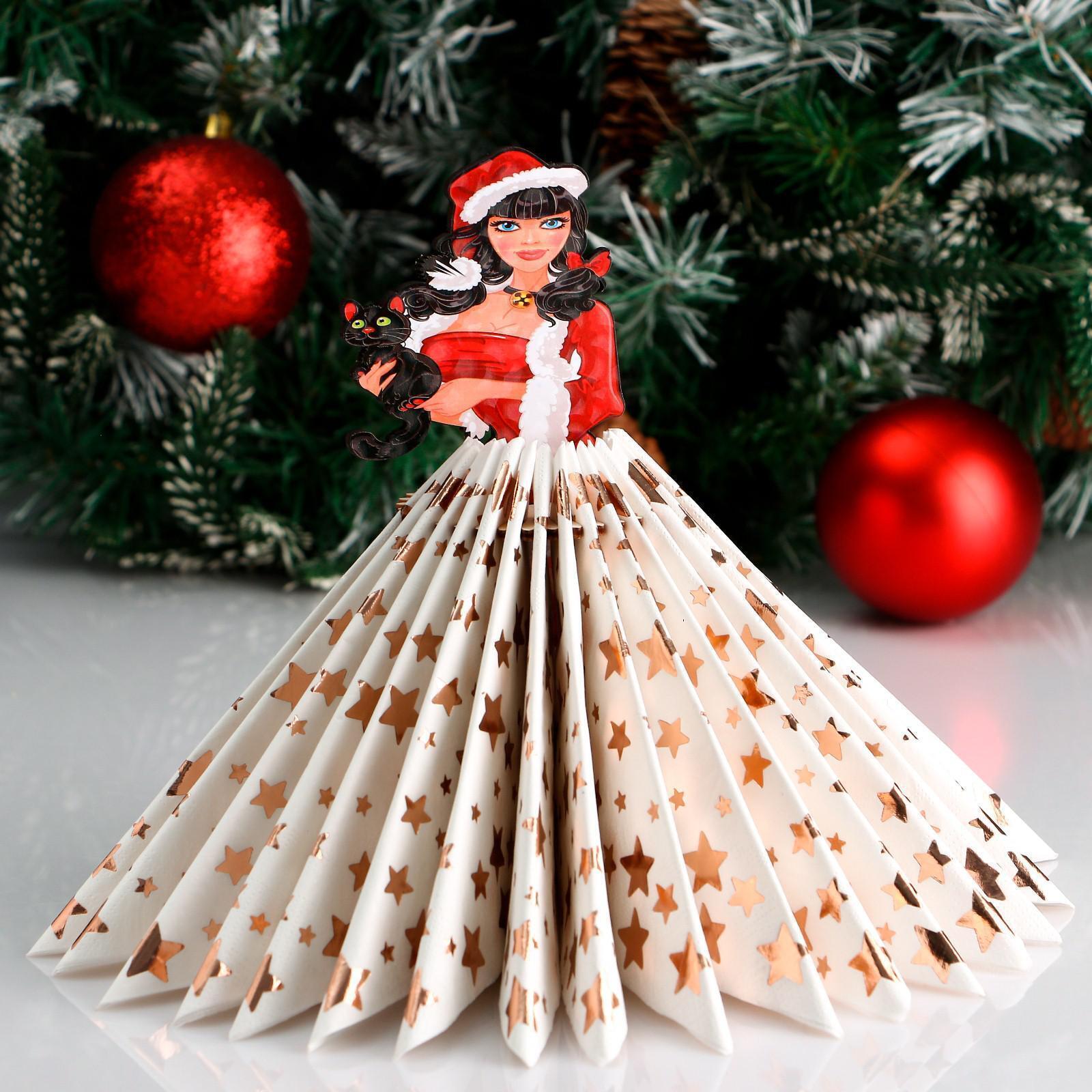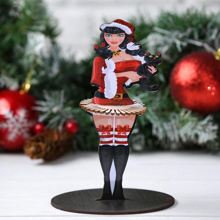 Салфетница "Девушка в новогоднем костюме с Котом", ДВУСТОРОННЯЯ наклейка, 20×13.5 см 5179912