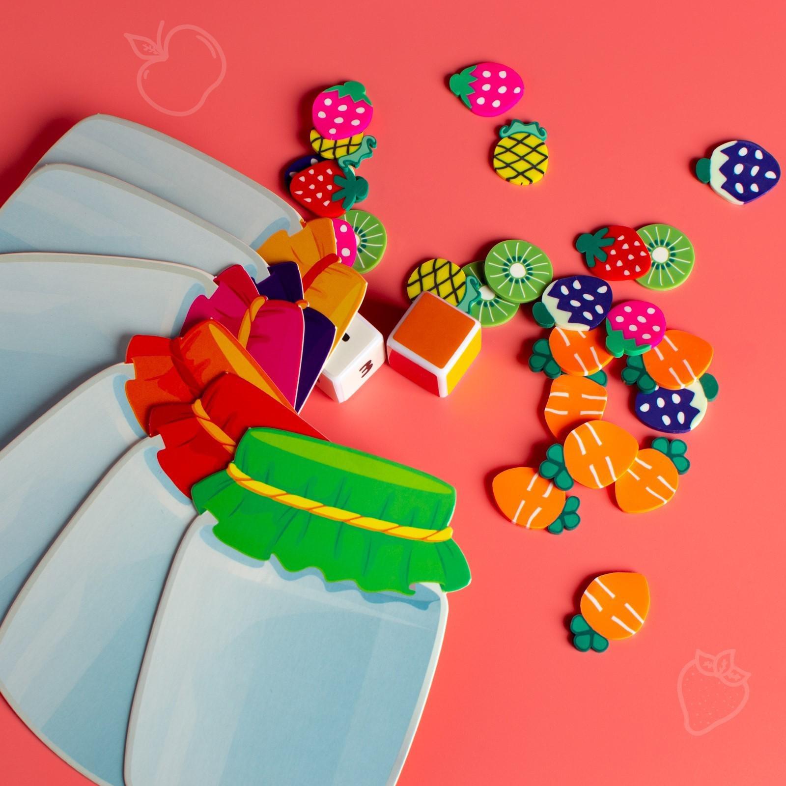 Игра создана для тренировки мелкой моторики и развития мышления. Ребёнок познакомится со многими фруктами и овощами и научится сортировать их по цвету, размеру и внешнему виду, а ещё обучится счёту!