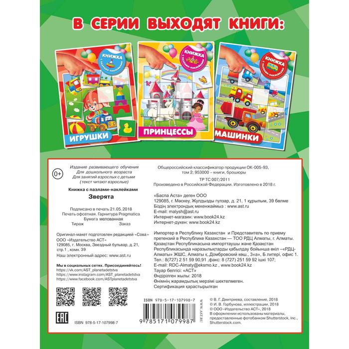 <p>Зверята — прекрасно иллюстрированная книга весёлых загадок о животных для развития речи, памяти, внимания, воображения и мелкой моторики + 80 красочных стикеров. Играть с многоразовыми наклейками интересно, познавательно, полезно. Любознательные малыши с удовольствием послушают и отгадают загадки, а также смогут сами дополнить сюжетные рисунки стикерами. Не беда, если сложить картинку с первого раза не получается, ведь стикеры можно приклеивать на страницы книги много-много раз. Для дошкольного возраста. </p>