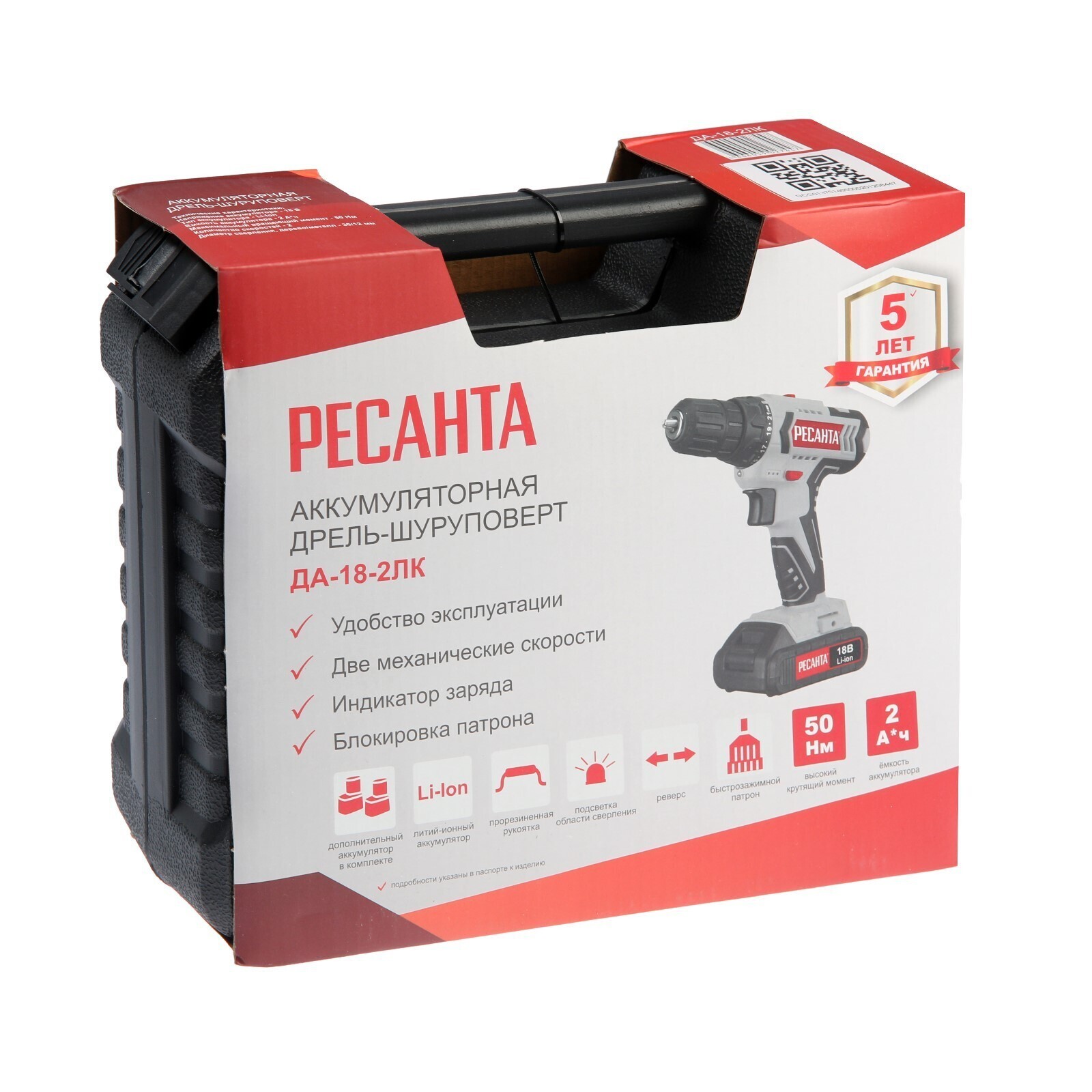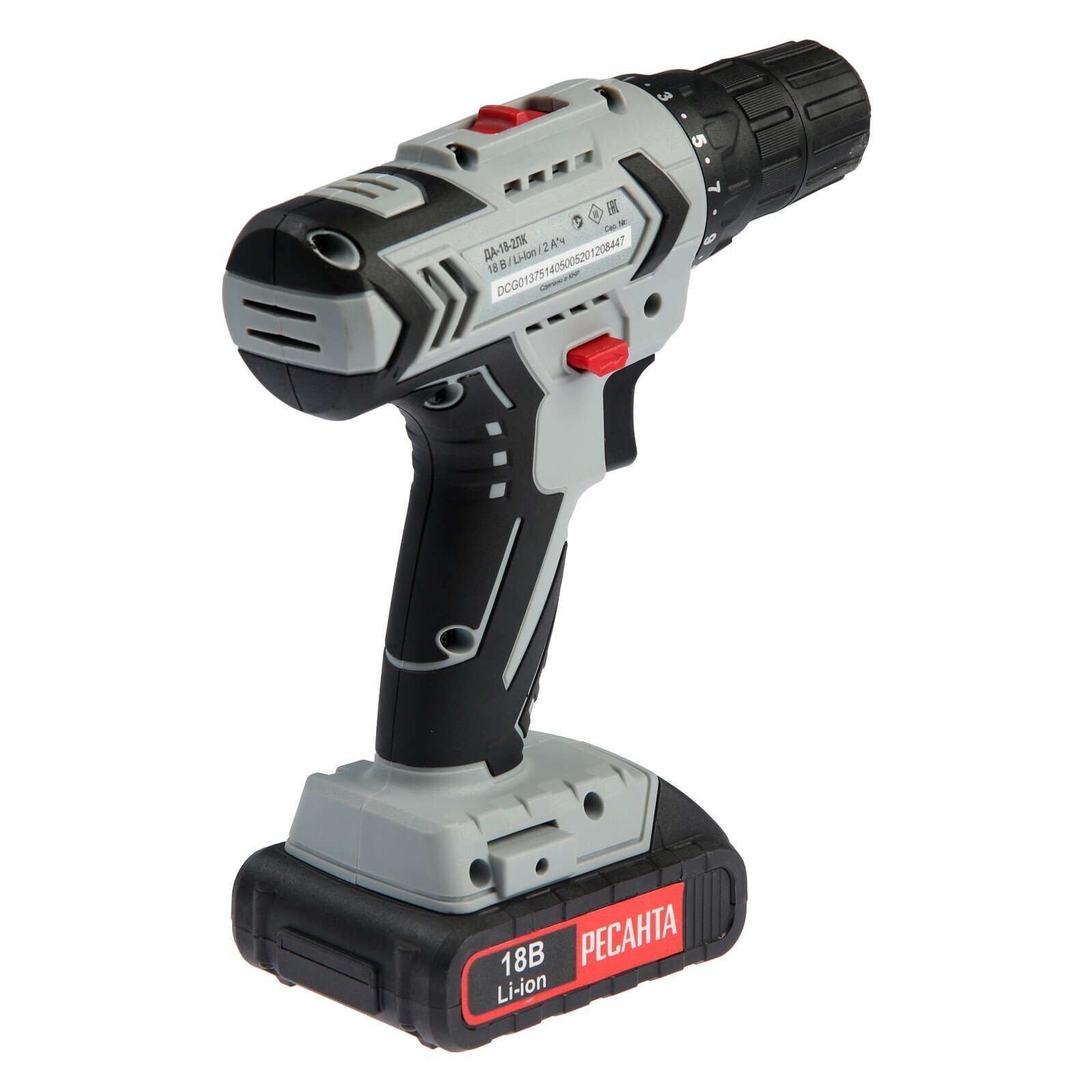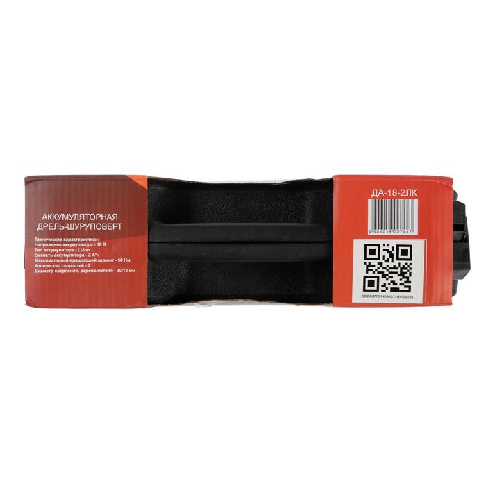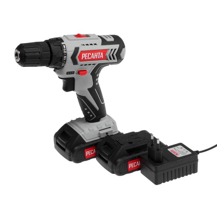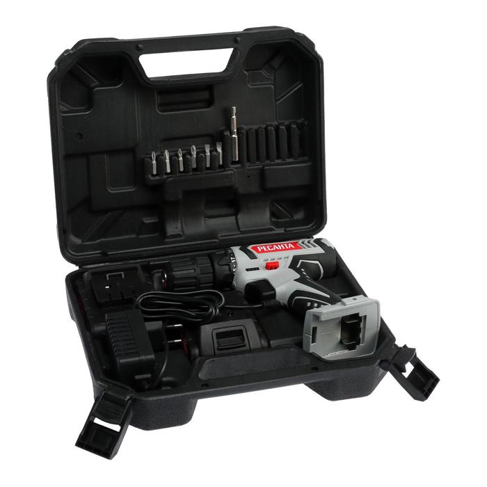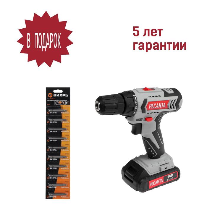 Дрель-шуруповерт "Ресанта" ДА-18-2ЛК, 18 Вт, 2х2 Ач, Li-Ion, 50 Нм, 400/1400 об/мин + БИТЫ 5193873