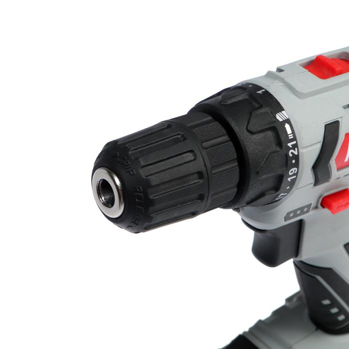 Прорезиненная рукоять обеспечивает удобное и надёжное удержание инструмента в руке во время работы. Быстрозажимной патрон облегчает замену рабочей оснастки. Двухскоростной редуктор для удобства ведения различных работ. Реверсивный механизм предназначен для быстрого изъятия сверла из материала в случае застревания, выкручивания или ослабления крепежа. С помощью регулировки частоты вращения инструмент можно настроить под необходимую толщину материала. Модель работает от надёжного литий-ионного аккумулятора (Li-Ion).