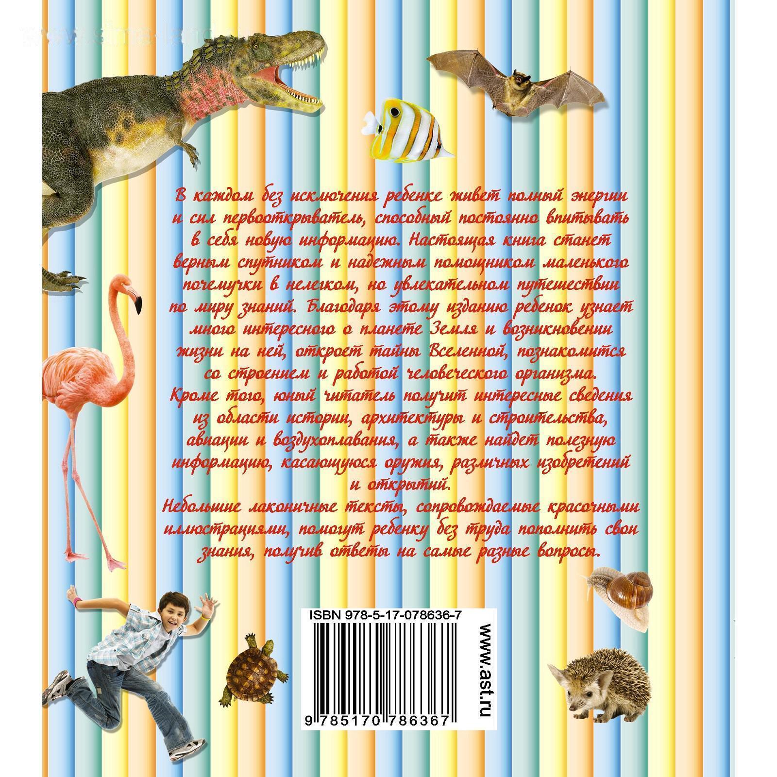 В каждом без исключения ребенке живет полный энергии и сил первооткрыватель, способный постоянно впитывать в себя новую информацию. Настоящая книга станет верным спутником и надежным помощником маленького почемучки в нелегком, но увлекательном путешествии по миру знаний. Благодаря этому изданию ребенок узнает много интересного о планете Земля и возникновении жизни на ней, откроет тайны Вселенной, познакомится со строением и работой человеческого организма. Кроме того, юный читатель получит интересные сведения из области истории, архитектуры и строительства, авиации и воздухоплавания, а также найдет полезную информацию, касающуюся оружия, различных изобретений и открытий. Небольшие лаконичные тексты, сопровождаемые красочными иллюстрациями, помогут ребенку без труда пополнить свои знания, получив ответы на самые разные вопросы.