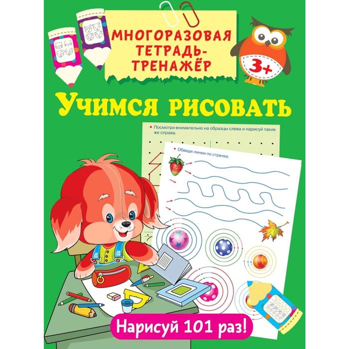 <p>Учимся рисовать — многоразовая рабочая тетрадь для будущего первоклассника. Интересные задания для маленьких художников помогут развить мелкую моторику, мышление, память и внимание. Благодаря специальному покрытию страниц линии и картинки можно много раз обводить и рисовать маркером на водной основе и аккуратно стирать. </p><p>Для дошкольного возраста. </p>