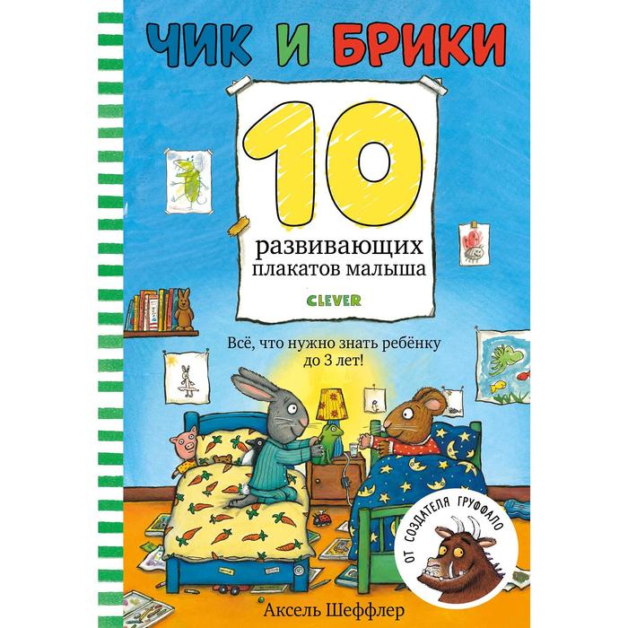 <p>Перед вами замечательный подарок для маленьких поклонников Чика и Брики! Внутри этой волшебной папки-10 ярких развивающих плакатов на базовые темы для занятий с малышом в течение первых трех лет жизни. Плакаты легко вынимаются. Каждый из них можно повесить на стену и иногдаменять, занимаясь в любое удобное время. Вместе с любимыми героями ребенок запомнит русский и английский алфавит, освоит счет до 10, выучит времена года и основных животных, сможет наблюдать за своими умениями и привыкнет к распорядку дня. В комплекте вы найдете мотивирующий постер Чем заняться дома, новогодний плакат и плакат эмоций. Размеры каждого плаката - 50х70 см. Зайчика Чика и мышку Брики придумал и нарисовал всемирно известный художник Аксель Шеффлер, создатель знаменитого Груффало. </p>