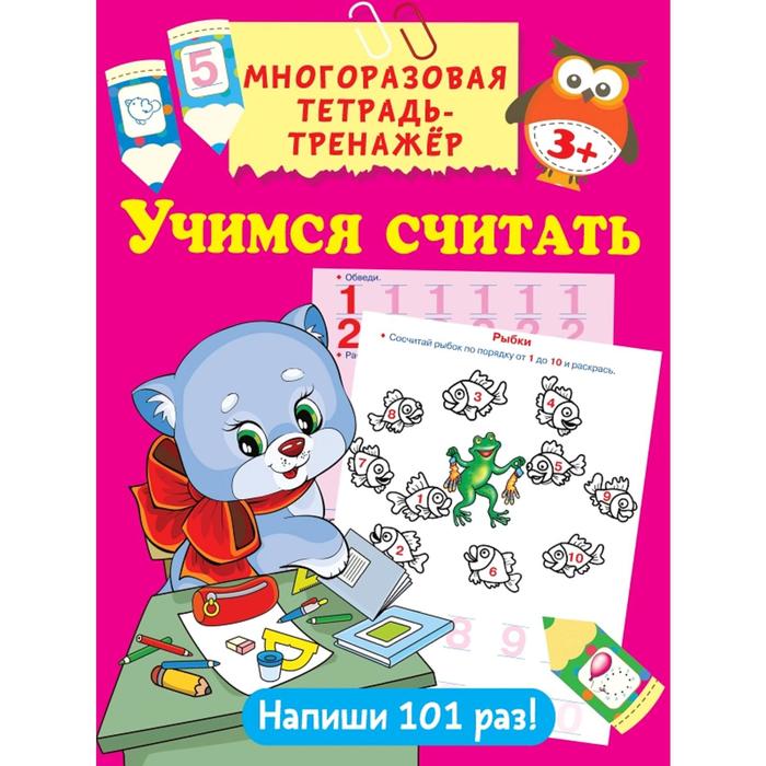 Учимся считать — многоразовая рабочая тетрадь для будущего первоклассника. Предложите малышу обводить и писать самостоятельно цифры и числа — такие занятия тренируют мелкую моторику, развивают и закрепляют навыки устного счёта. Выполняя упражнения маркером на водной основе, ребёнок сможет много раз обводить цифры и числа, выучит порядковый счёт от 1 до 10.