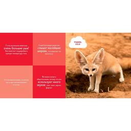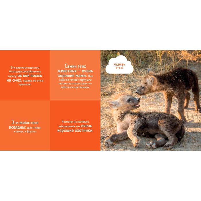 <p>Кто является родственником волков и собак? Кто может почуять еду даже под толстым слоем песка? У каких грызунов самые длинные уши? Откройте для себя и своего малыша удивительный мир животных. Вместе с ребенком прочитайте разные интересные факты и попробуйте угадать, о ком идет речь. </p>