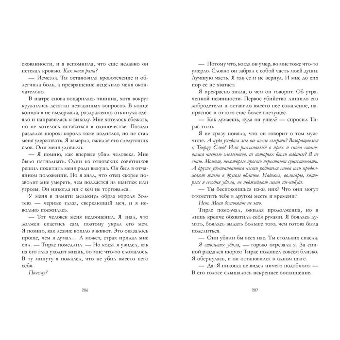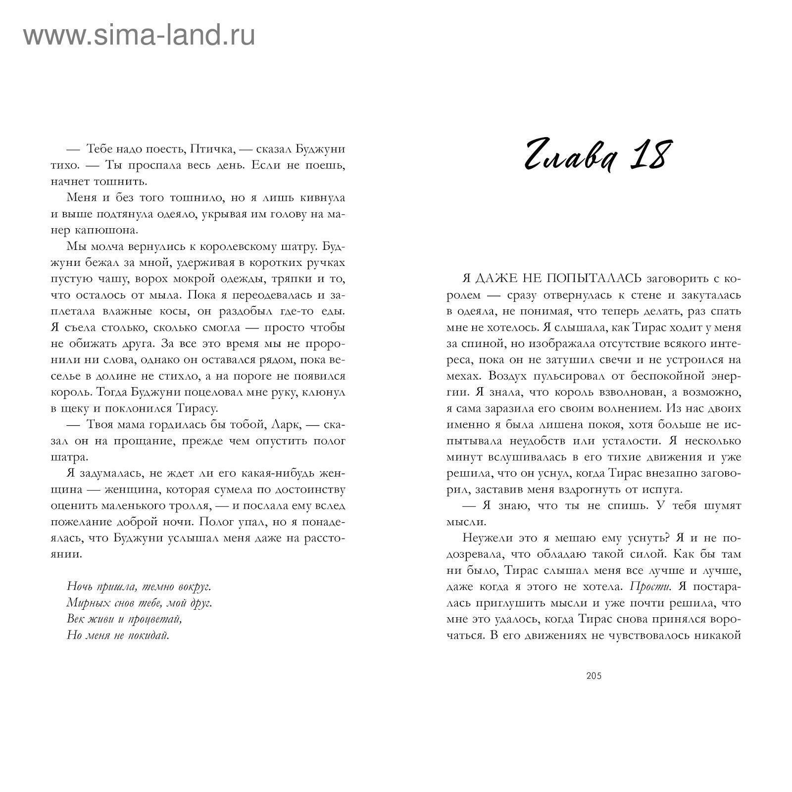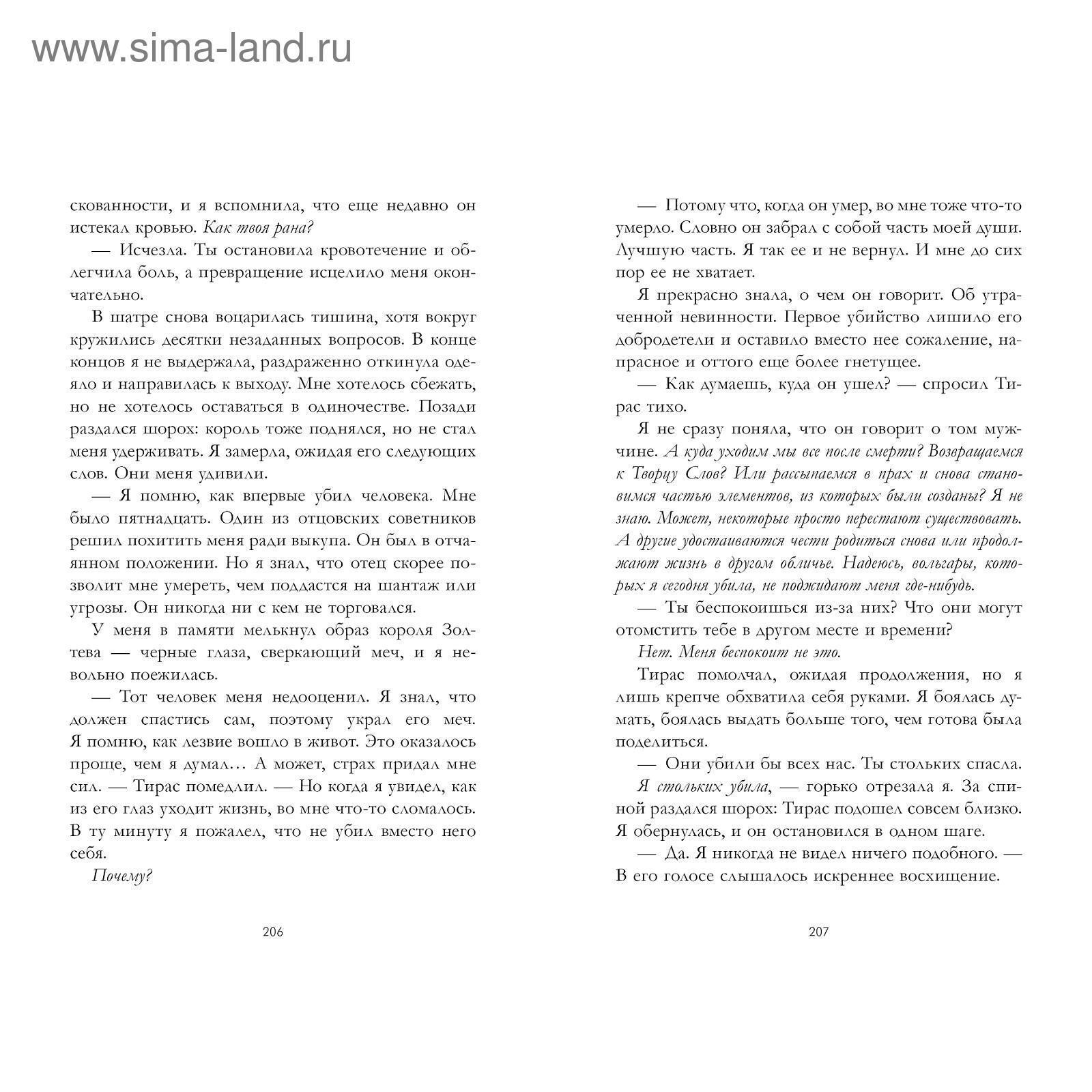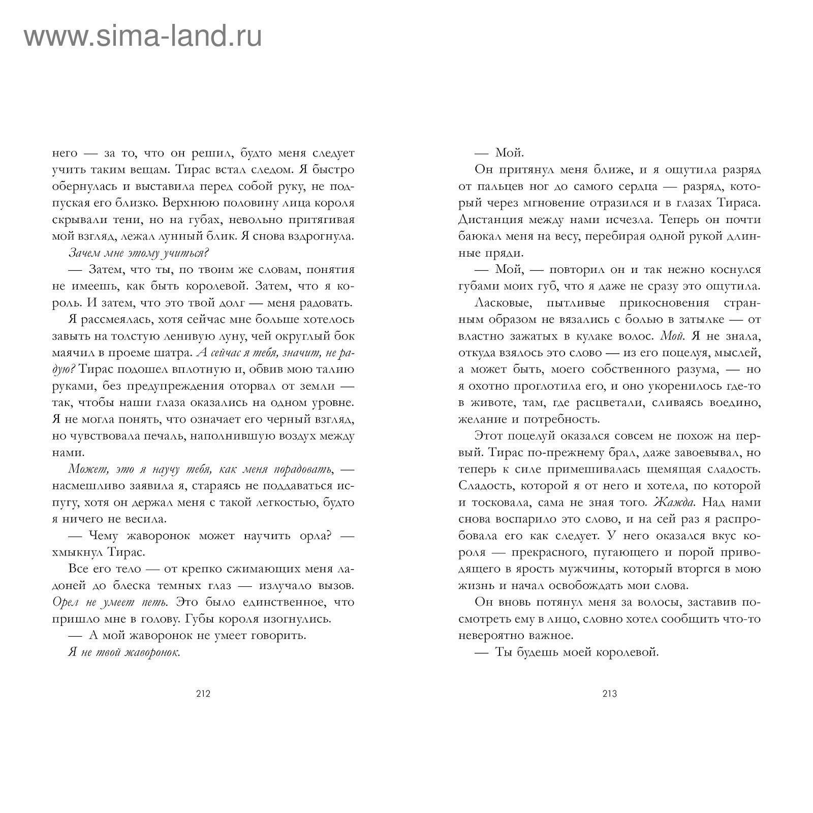 Однажды жестокий король Золтев убил мою мать из-за ее волшебного дара. Чтобы скрыть и мой дар, она приказала мне навек замолчать. Прошло много лет, и молодой король Тирас, сын Золтева, захватил меня в плен. Все, о чем я мечтаю, - стать свободной, вновь обрести голос. Но для этого нужно убежать. А я - пленница маминого проклятия, молодого короля и… любви к нему. Он не похож на злого отца. Каждую ночь Тирас борется с чудовищем внутри себя. И каждую ночь, проигрывая битву, исчезает на несколько дней. В королевстве, где веками истреблялась магия, единственная сила, способная даровать свободу нам обоим, - любовь. Но слышит ли король мои слова?