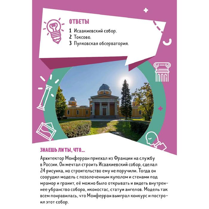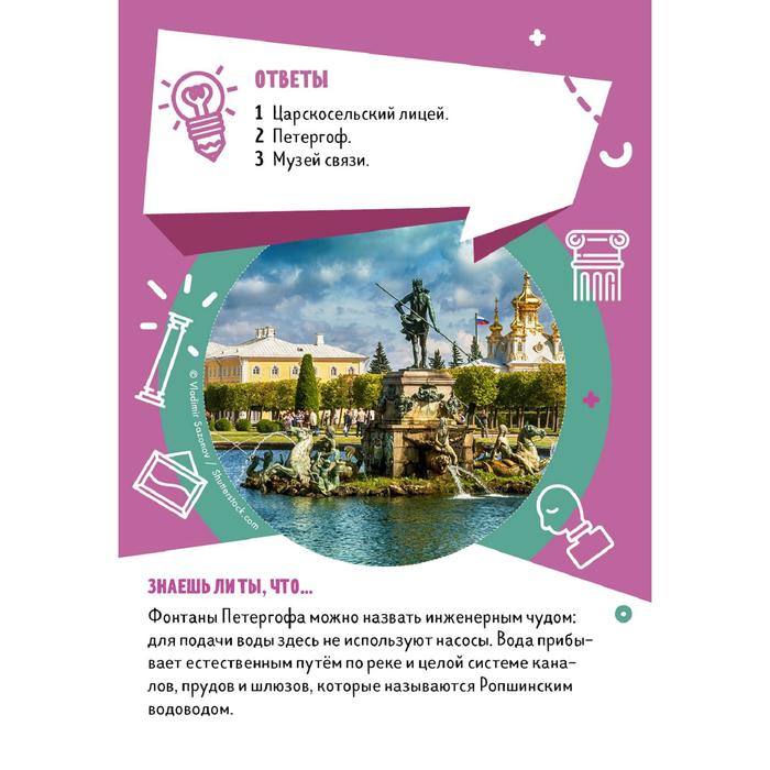 Игра-энциклопедия 50 карточек с самыми любопытными фактами о Санкт-Петербурге. 150 вопросов и ответов, интересных взрослым и детям. Зарабатывай очки и становись чемпионом!